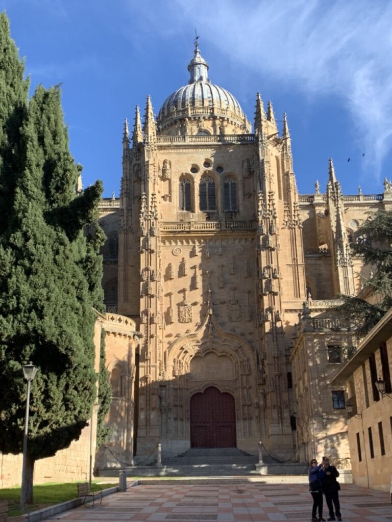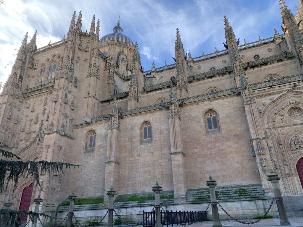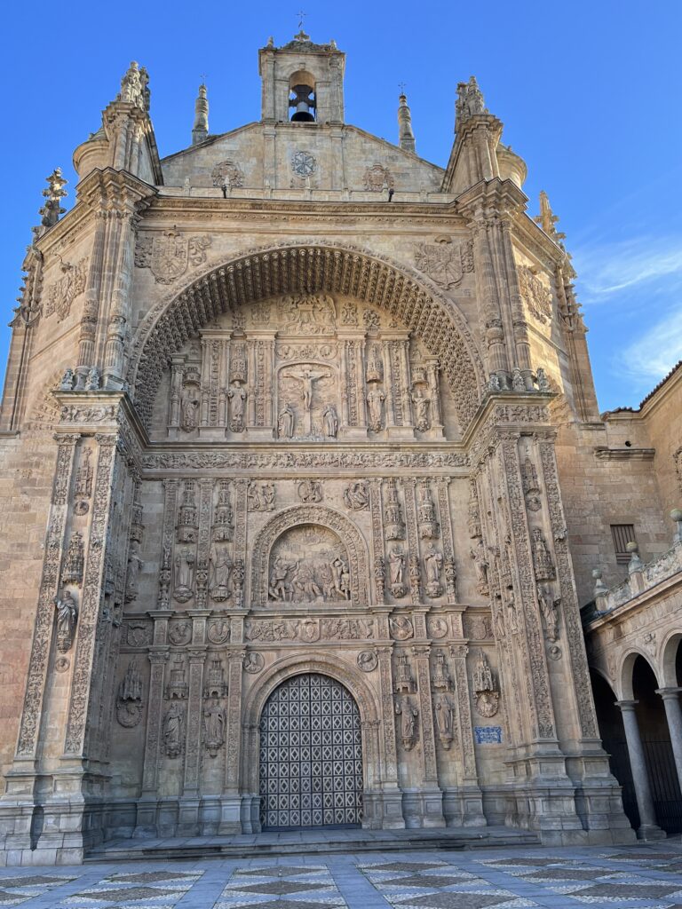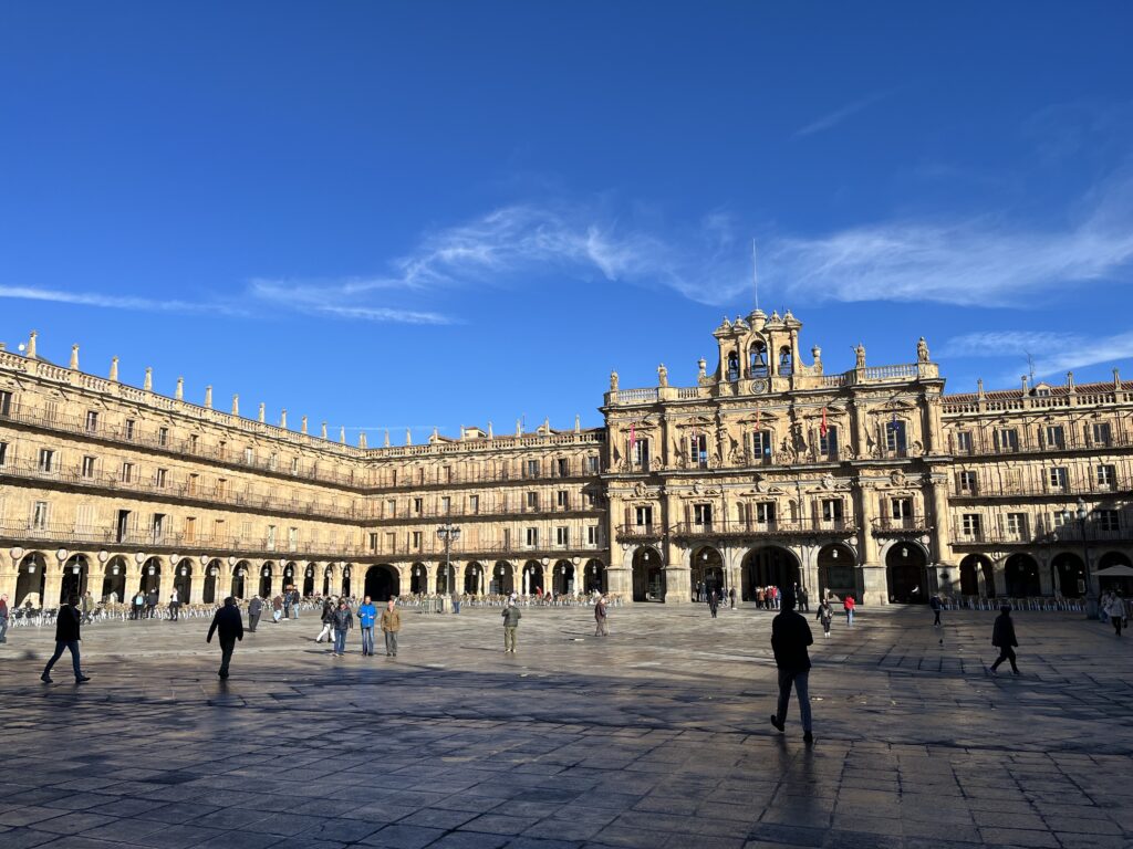 Salamanca wurde 1988 zum Unesco- Weltkulturerbe erklärt und ist bekannt für ihre Universität, die es seit 1218 gibt. Die vielen alten Gebäude fesselten uns. Die ersten Häuser, die wir am Eingang in die Stadt sahen, waren alle Anfang 1800 erbaut. Sie gehören wahrscheinlich zu den jüngeren in der Altstadt. 😂 Wir liefen durch die Altstadt, die noch relativ menschenleer war. Es ist unglaublich, wie alt die Gebäude hier sind und wieviel Arbeit in den Fassaden steckt. Viele Kulturen haben hier Einfluss auf die Gestaltung der Stadt genommen. Nachdem wir uns einen kleinen Überblick verschafft hatten, liefen wir über die Plaza Mayor, den Hauptplatz der Stadt, der 1746 fertiggestellt wurde. Der Platz gilt als schönster Platz Spaniens. Früher fanden hier Stierkämpfe statt. Auch hier sind die Fassaden unglaublich dekoriert.
