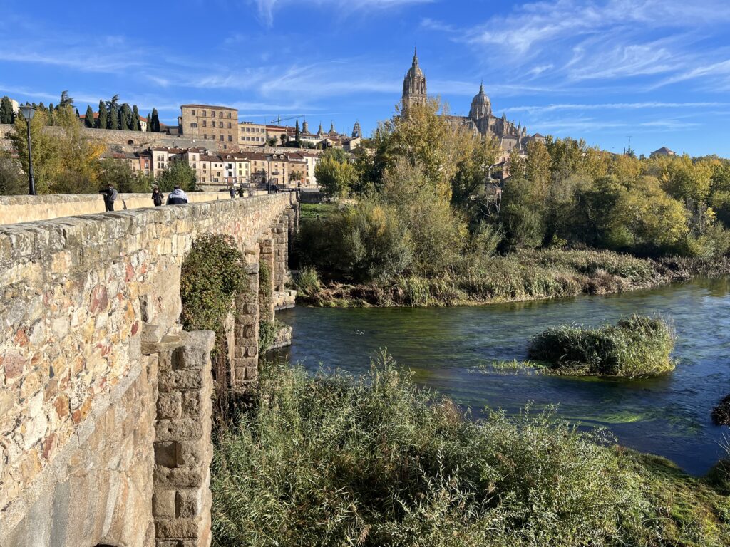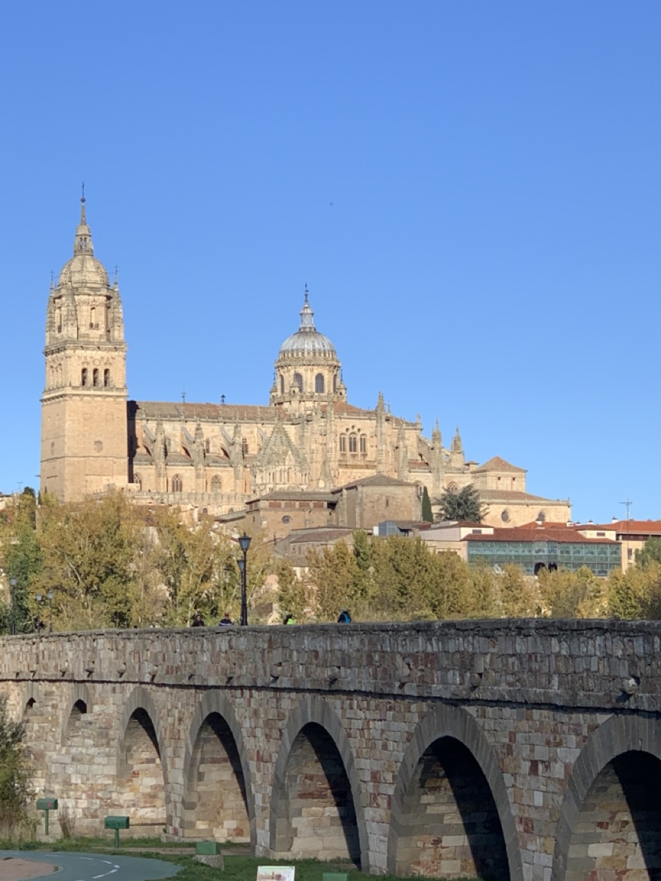 Nach einem ausgiebigen und guten Frühstück im Hotel, gingen wir den Hügel hinunter und überquerten den Rio Tormes auf einer alten Brücke, die uns einen Vorgeschmack auf die Altstadt bot, die uns erwartete. Die Brücke Puento Romano haben die Römer erbaut. Sie ist 358m lang und ist ca. 2000 Jahre alt!