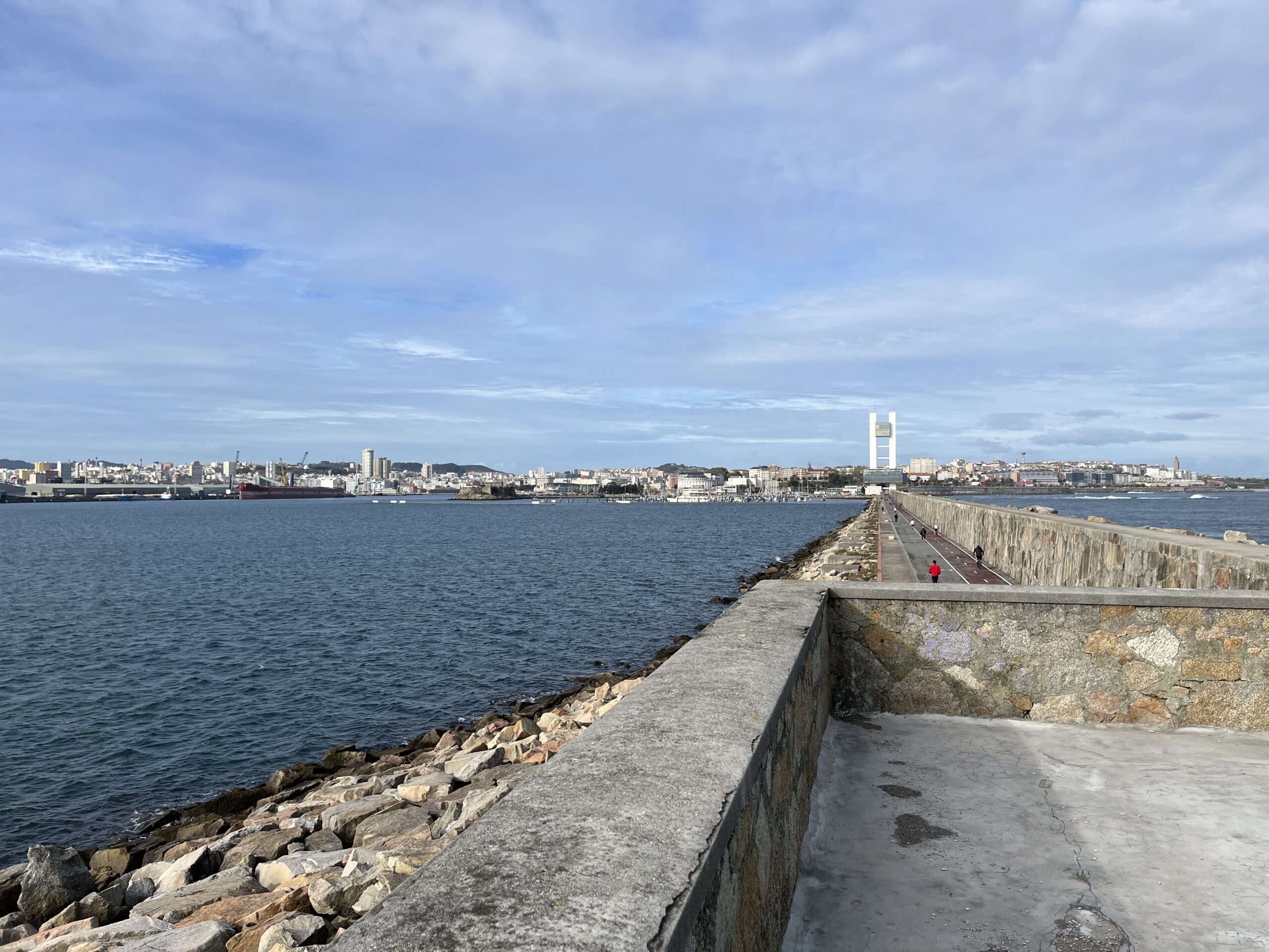 Gegen 10:00 Uhr liefen wir los, weil wir noch ein paar Dinge in der Stadt ansehen wollten. Von unserem Hotel führt eine Promenade direkt am Wasser entlang, bis hin zum Hafen. Am Hafen liefen wir auf der Mole entlang, die ca. 1 Km lang ist. Am Ende ist eine Plattform, auf der ein grüner Signalturm steht. Diesen sehen wir von unserem Zimmer aus.
