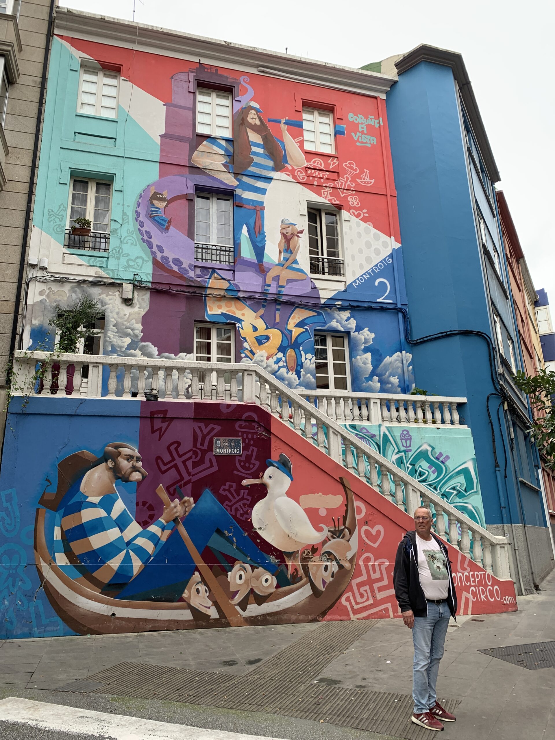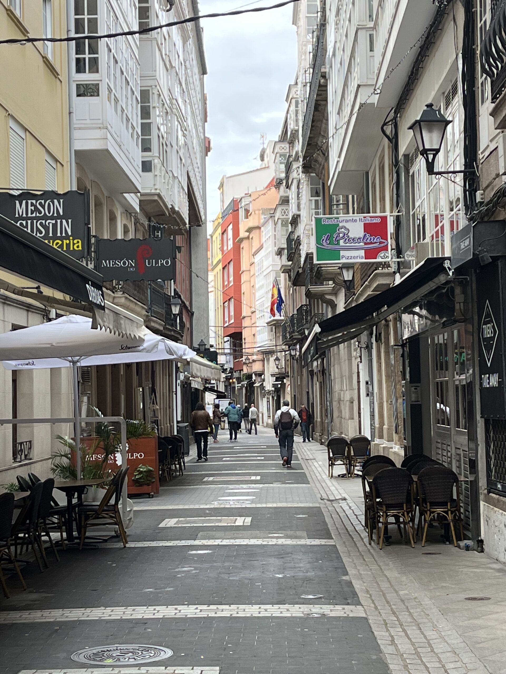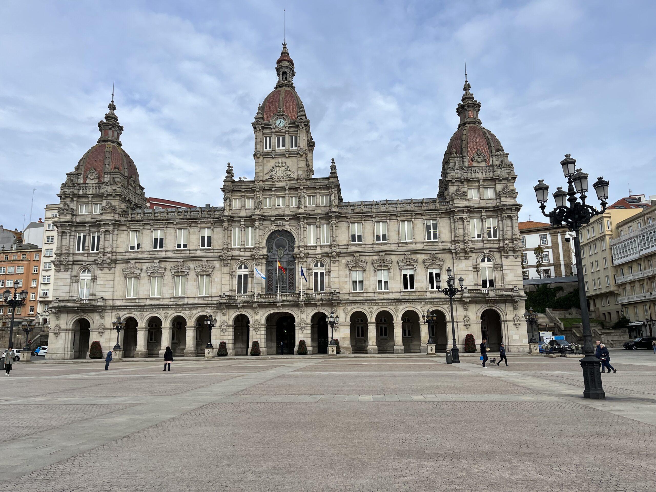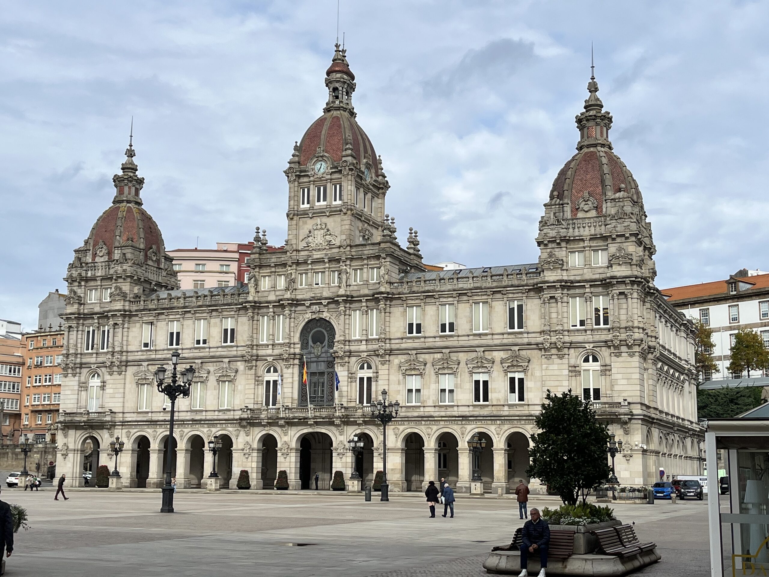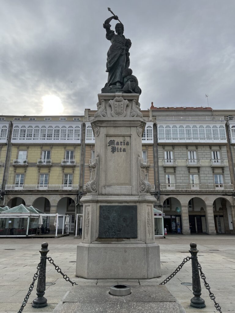 Von hier aus kamen wir an den Praza de Maria Pita. Maria Pita war eine Schlachtersfrau, die die Einwohner des Ortes vor einem Überfall durch die englische Armada in 1598 gewarnt hatte. Sie wird hier als Heldin verehrt. Man benannte den Platz vor dem Rathaus nach Ihr. Der Platz ist von prächtigen, historischen Gebäuden und Cafés umgeben.