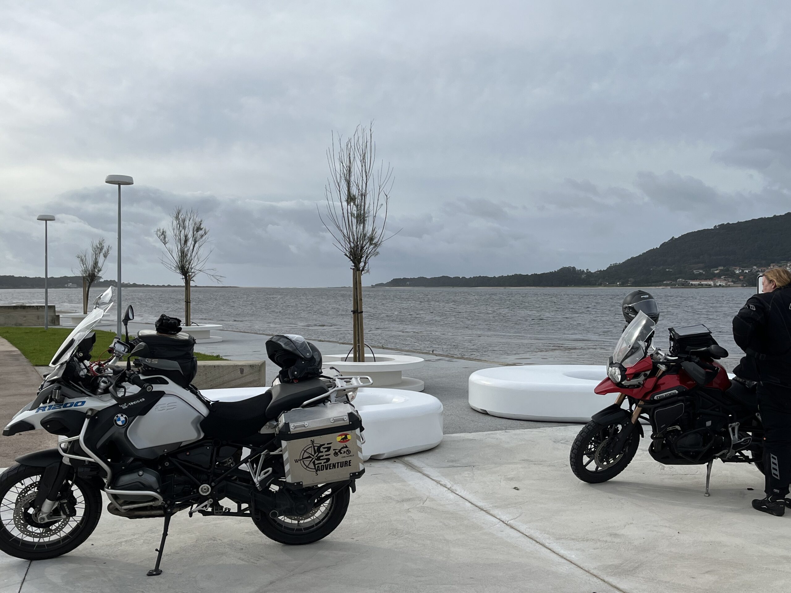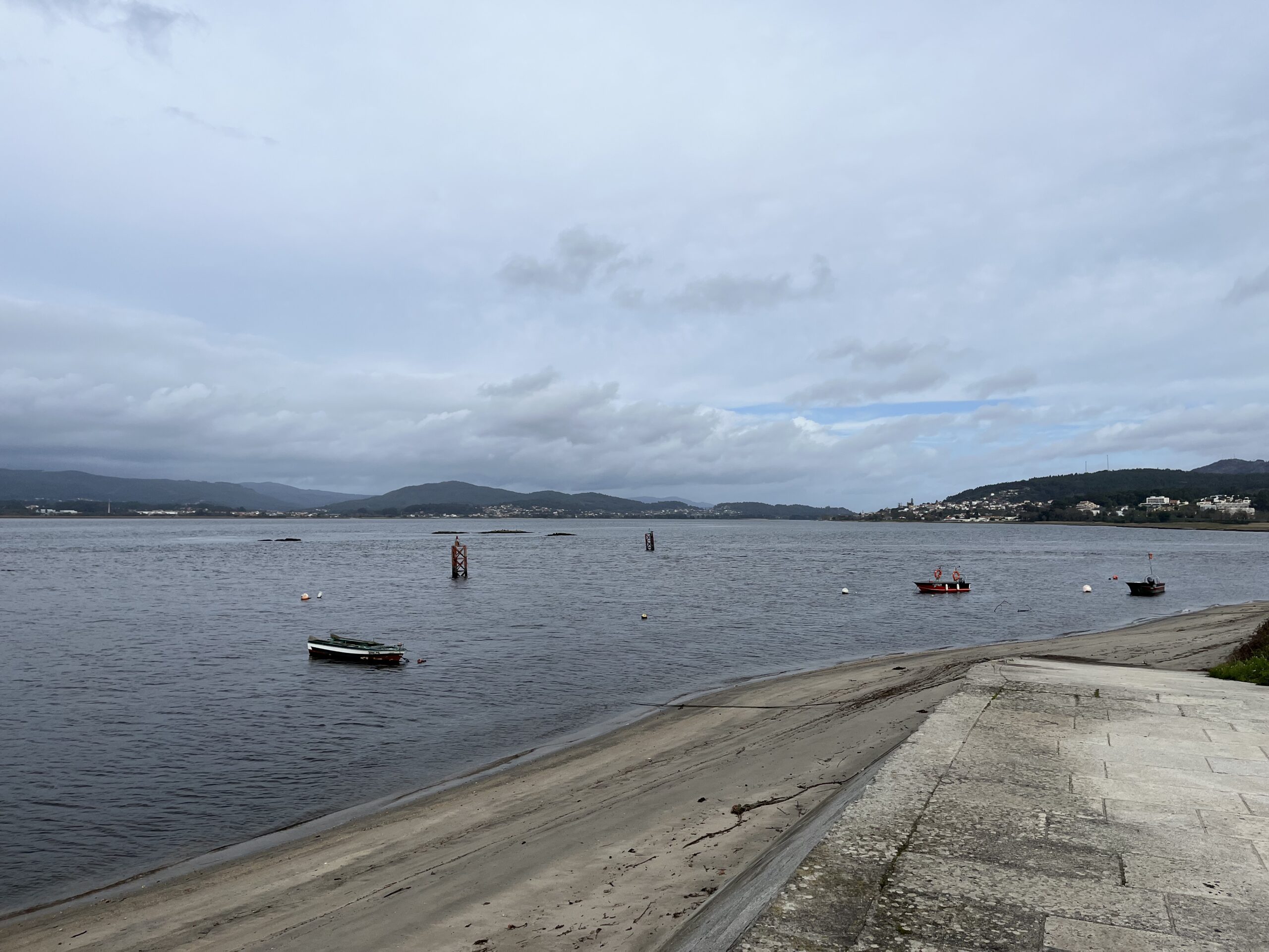 Nach ca. 4,5 h erreichten wir die Grenze nach Portugal, die mitten durch den Rio Miño verlÀuft. Komischerweise wurde es sofort wÀrmer. (17 Grad). Wir haben die GoPro mitlaufen lassen. Den Film findest Du hier.