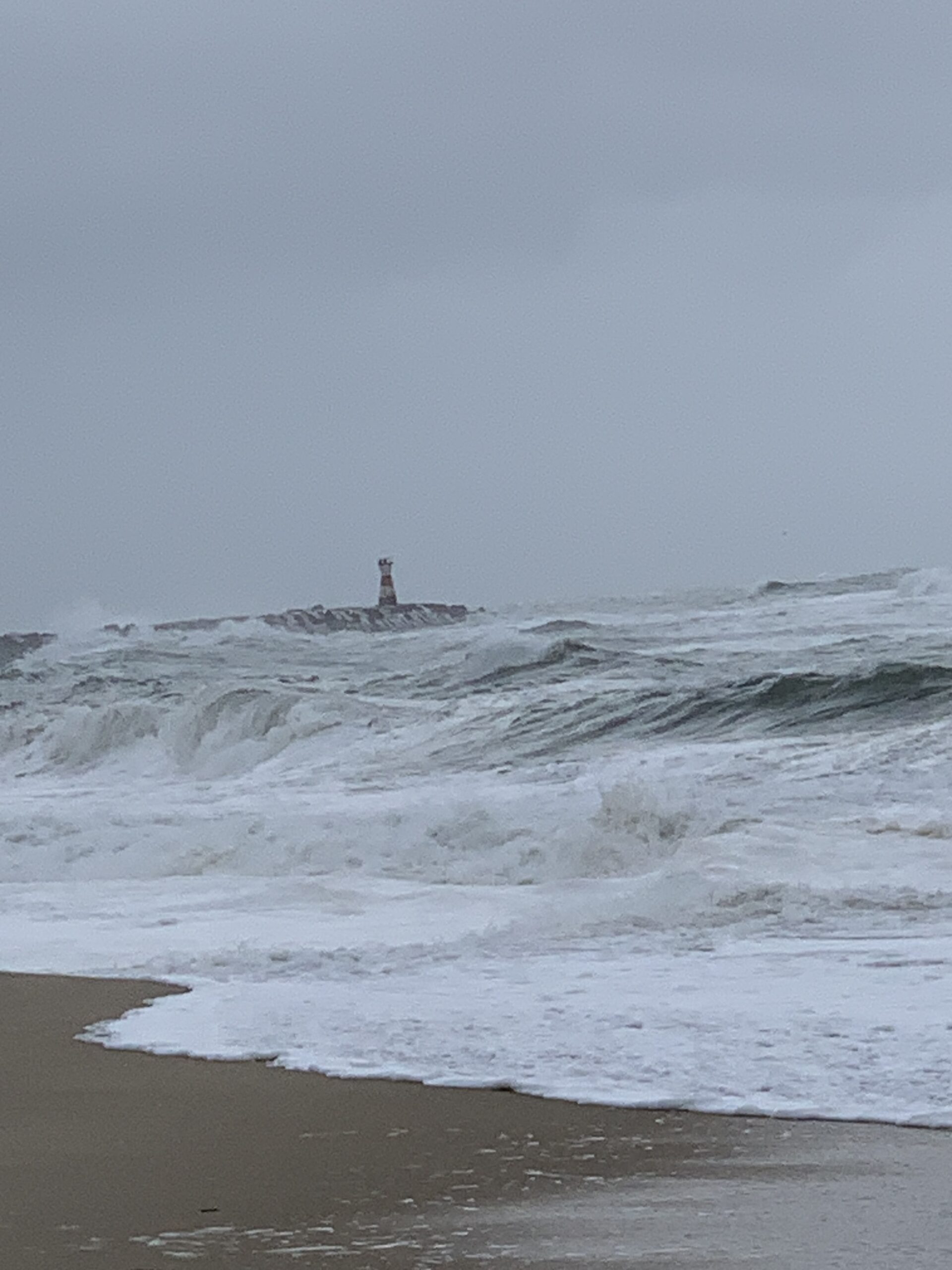 Die Weite des Strandes und die Kraft des Meeres an der Atlantikküste ist unglaublich. Die Wellen waren einige Meter hoch. Diesmal haben wir uns nicht zum Leuchtturm hinaus getraut, weil die Dünung viel zu hoch war. Zum Nachmittag kehrten wir in einem kleinen Restaurant an Strand ein und aßen eine Kleinigkeit. Das war eine gute Entscheidung, denn wenig später goss es aus Eimern.