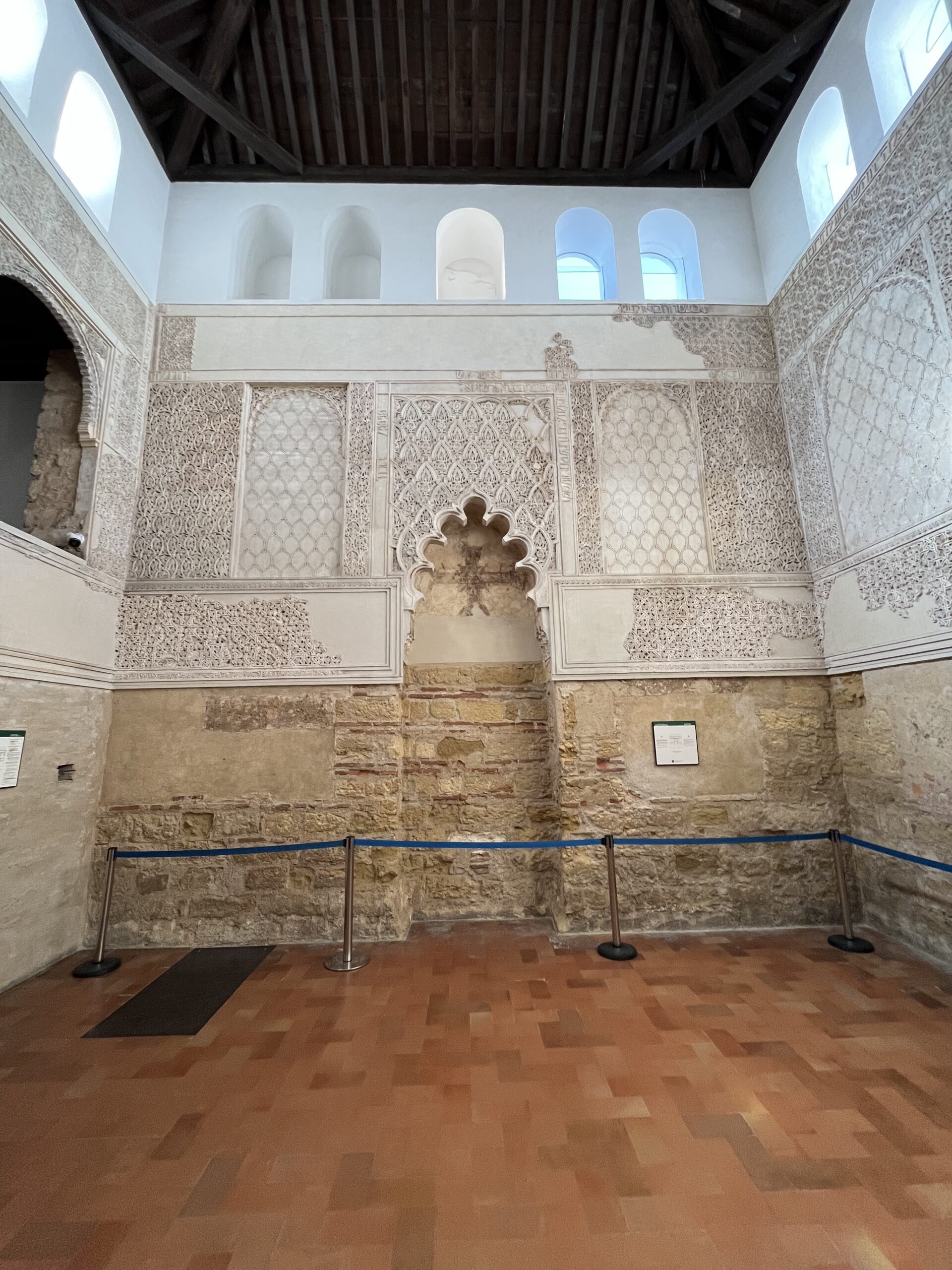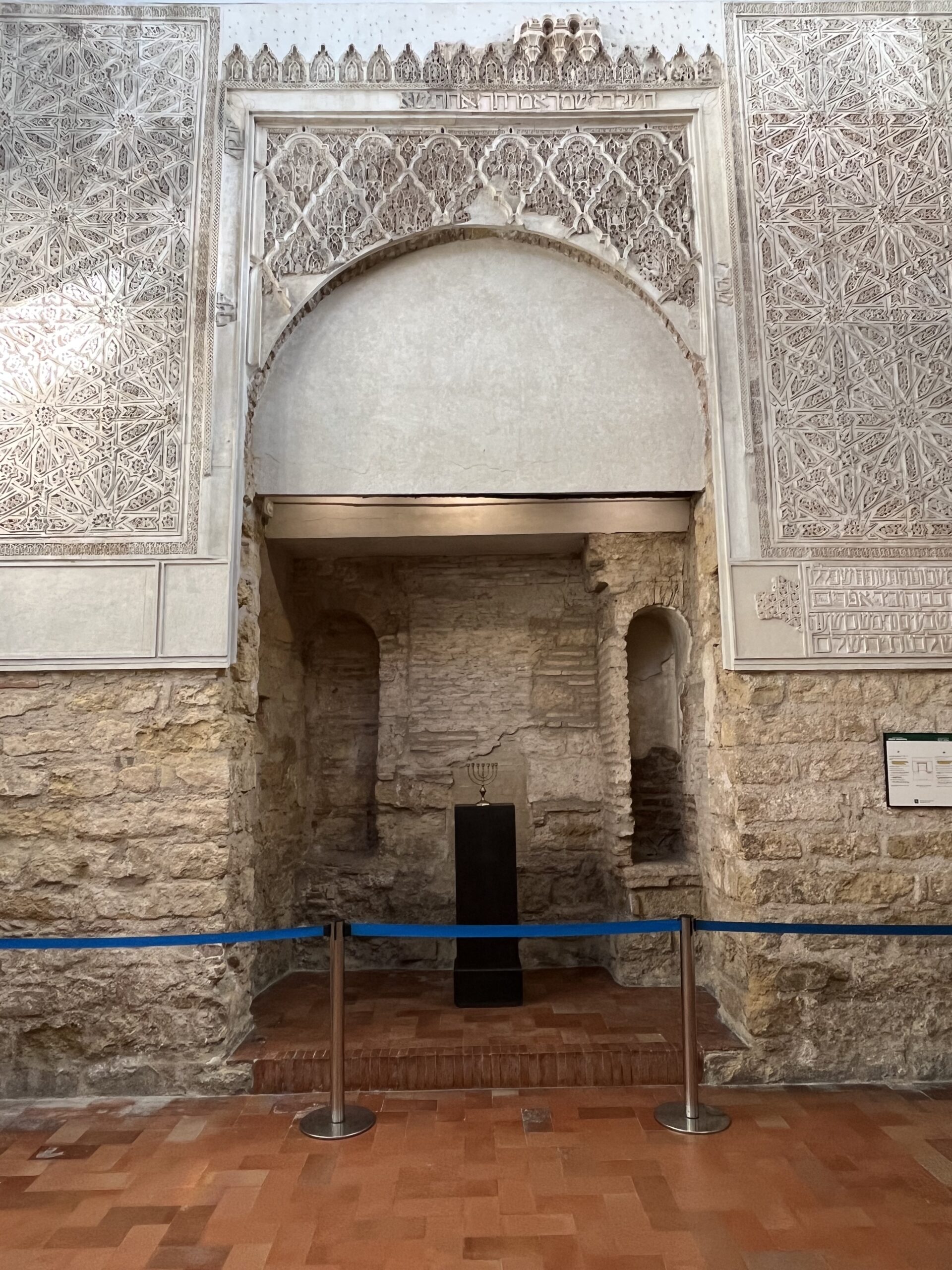 Nach ca. 1,5 h standen wir wieder im Innenhof und entschieden, Richtung der alten Synagoge zu gehen, die hier im Judenviertel steht. Sie ist 1350 erbaut und die einzige, neben der in Toledo, die die Zerstörungen im Zuge der Christianisierung 1492 überstanden hat. Nach bewegter Geschichte und Restauration ist sie nun seit 1985 Museum und für jedermann kostenlos zugänglich.