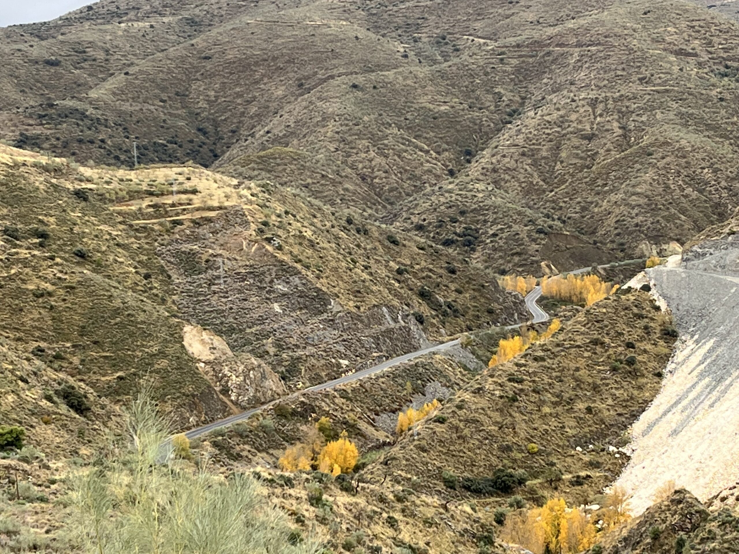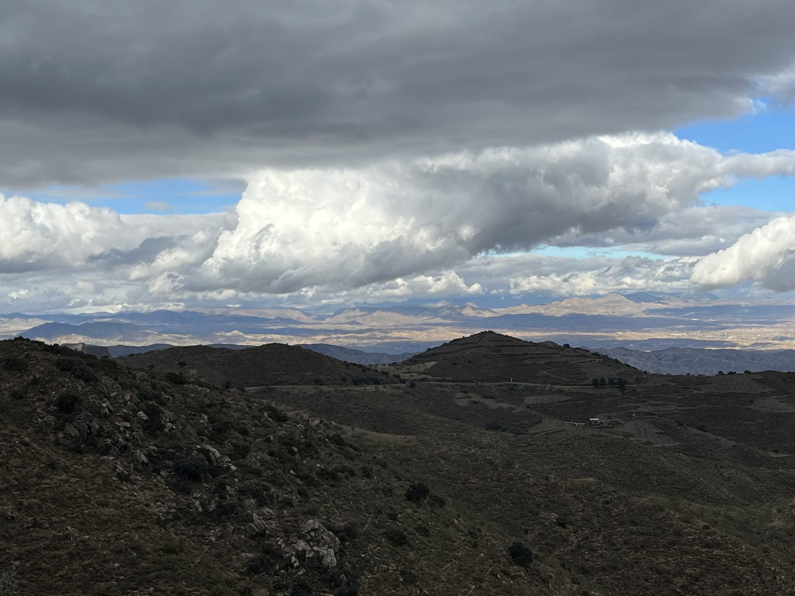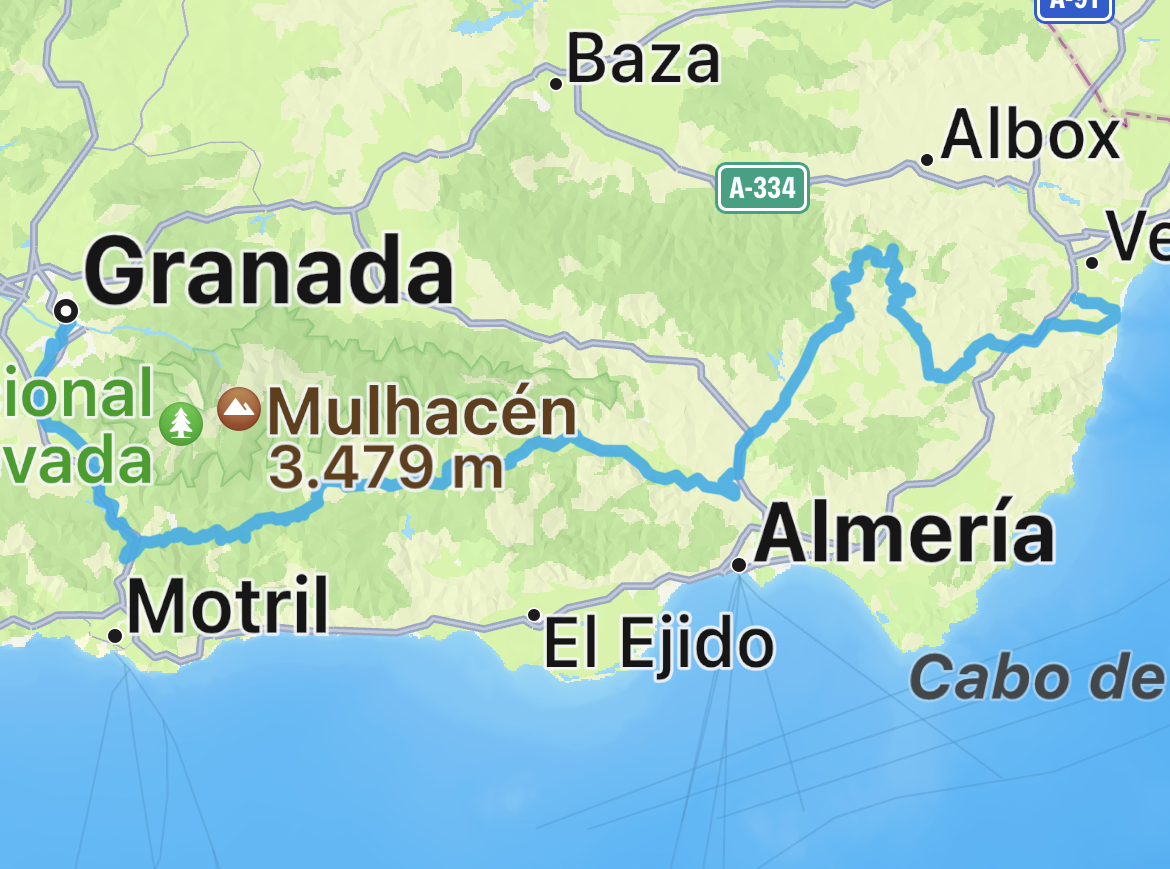 Da heute Feiertag in Spanien ist, waren die Strassen leer und wir konnten zügig Granada verlassen. Es war noch etwas frisch und die Luftfeuchtigkeit war hoch, aber immerhin hatten wir 10°C und Futter im Anzug. Das Lichtspiel der Wolken und der Sonne waren einfach schön. Auch Schnee sahen wir auf den Bergen.