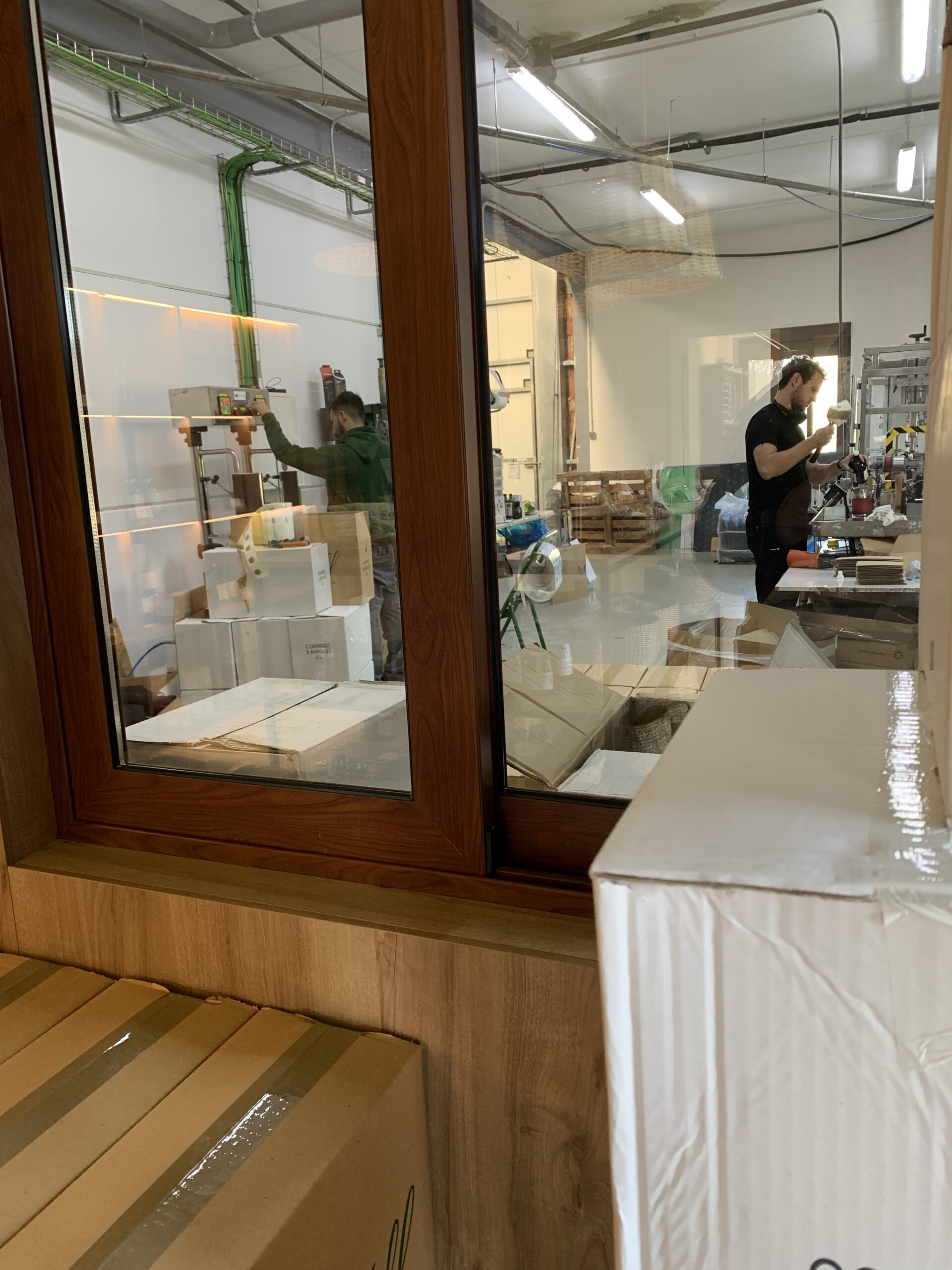 Der Kanister stand nicht im Regal, das Fach war leer. Wir fragten die Verkäuferin, ob sie noch welche hätte. Sie verneinte, ging dann aber nach hinten und sagte ihrem Kollegen, er möge bitte einen 3l Kanister für uns abfüllen. „Kommt gleich“, sagte sie mit einem Lachen. Durch die Glasscheibe im Laden kann man in die Produktionshalle schauen. Also konnten wir zuschauen, wie unser Kanister von Hand etikettiert und dann befüllt wurde. Sehr lecker! Die neue Ernte wird uns schmecken! 😋
