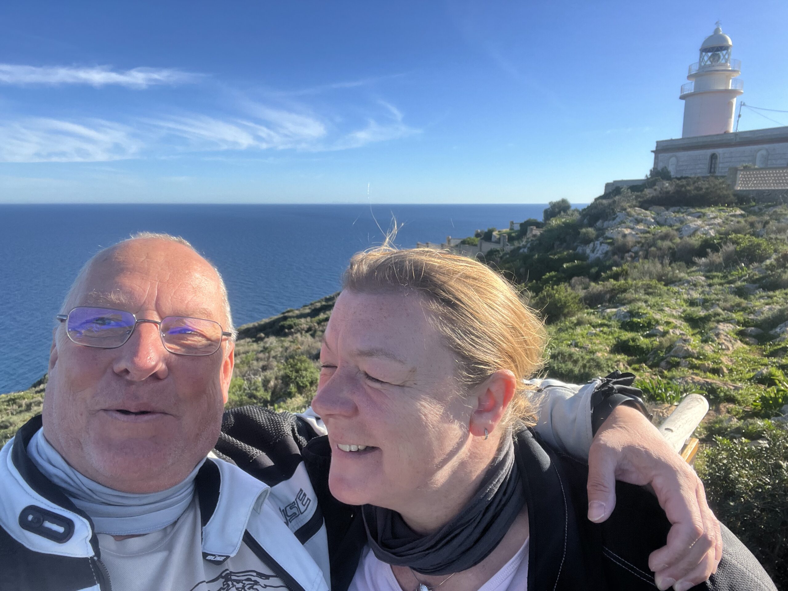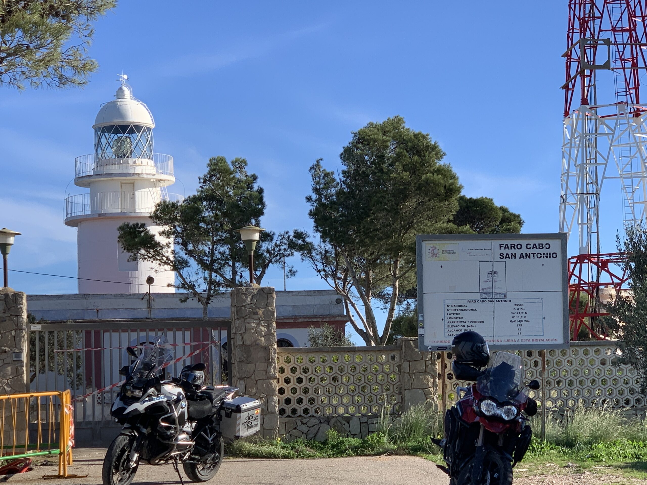 Da gibt es gleich ein paar schöne Bilder von unserer gestrigen Tour. Die Sonne schien und wir hatten 22°C. Eine unserer Lieblingsstrassen fĂŒhrt von Javea nach Denia. Sie ist sehr kurvenreich und der Ausblick, den man von dort geniesst, ist der Hammer. Auf halber Strecke nach Denia verliessen wir die Hauptstrasse, um zum Leuchtturm San Antonio zu gelangen. Es war fast windstill und wir waren fast allein dort oben. Die Sicht war so gut, dass wir in der Ferne Ibiza sehen konnten. Aber seht selber…..