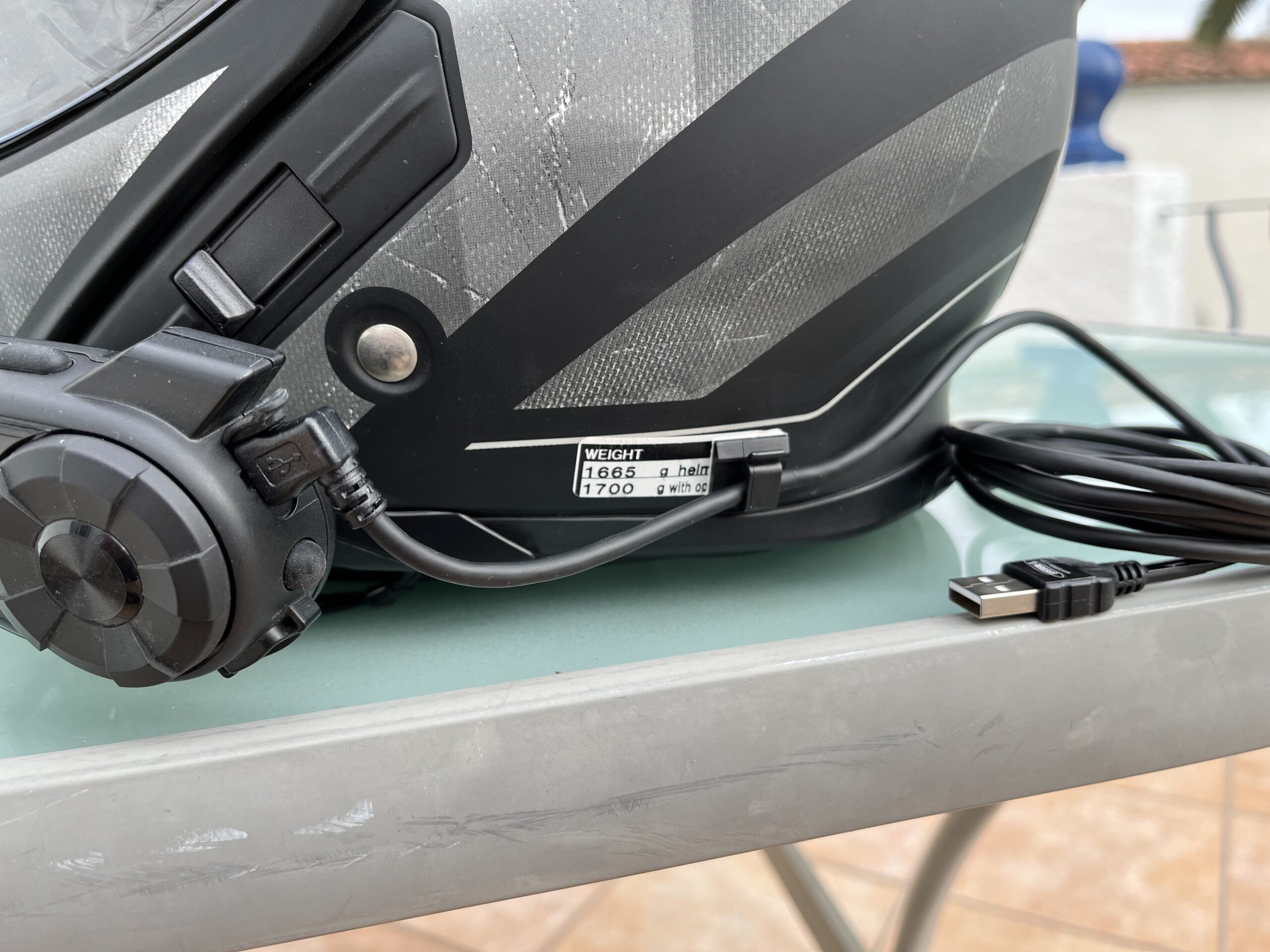 Auch fĂŒr das Kabelproblem mit dem Kommunikationssystem am Shoei- Helm haben wir eine Lösung gefunden. Einen fest sitzenden, abgewinkelten Stecker und einen kleinen, aufklebebaren Kabelhalter haben wir bei einer bekannten Onlineplattform gefunden.