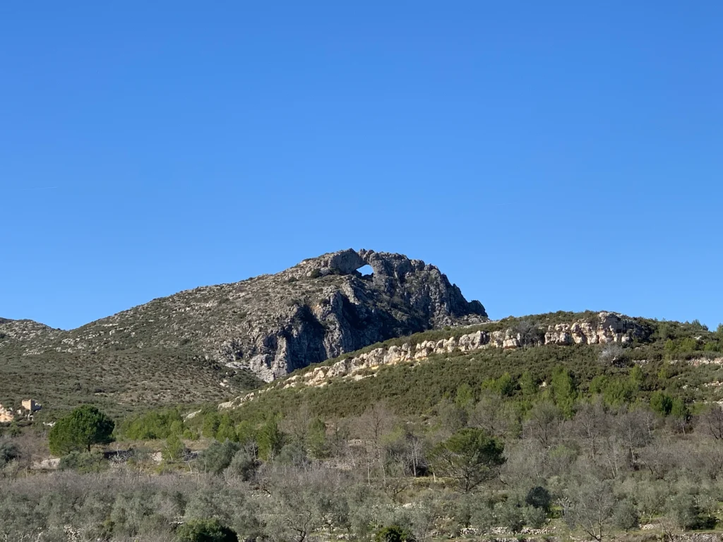In Gorga schlugen wir wieder den Kurs Richtung Heimat ein. Über Famorca und Castells de Castells führte unser Weg wieder am Penya Forrada vorbei, dem Felsenbogen, den man von weitem sehen kann.