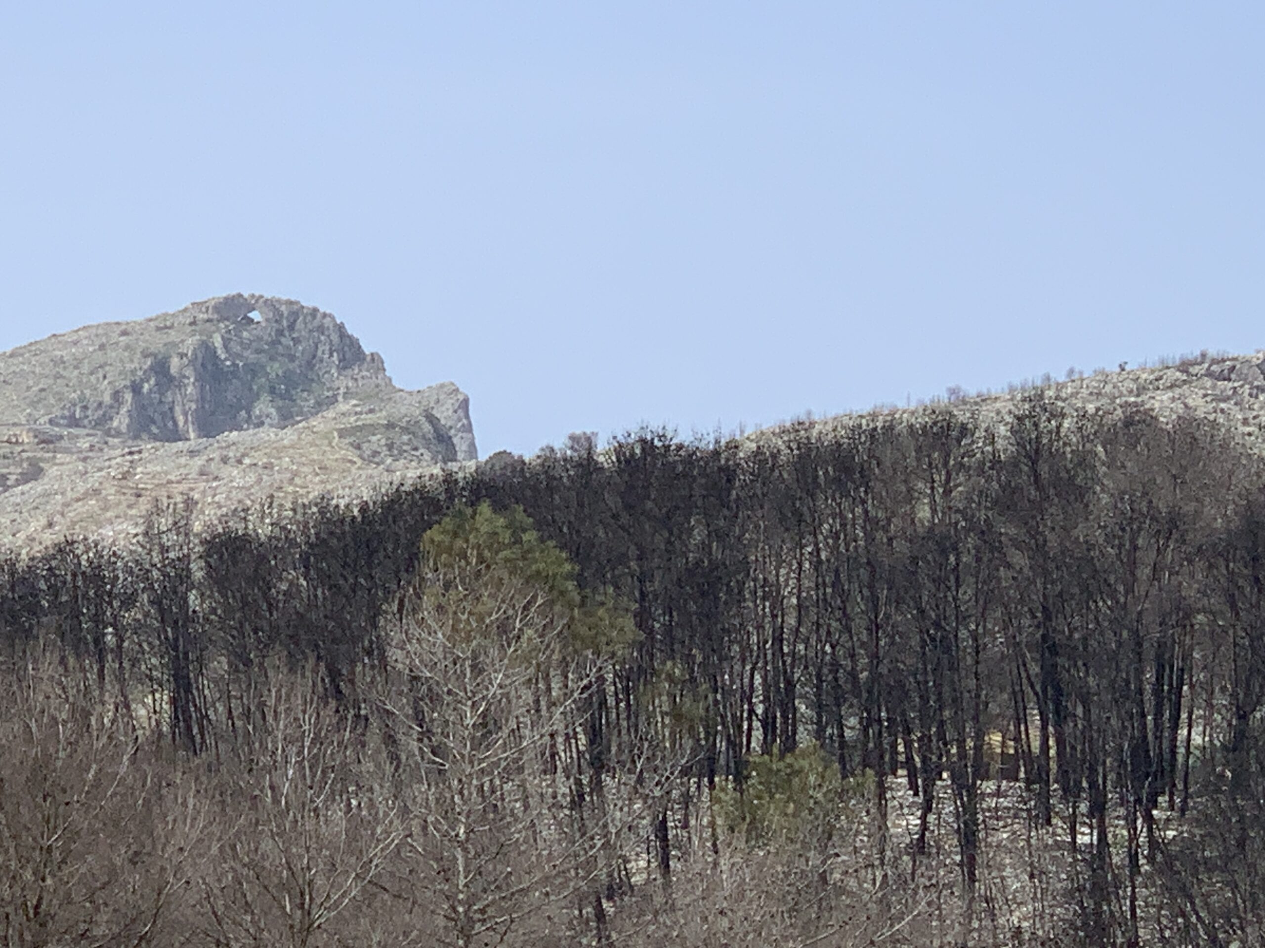 Hier, auf der Hochebene, die dem Bogen gegenüber liegt, hat letzten Sommer das Feuer gewütet. Es ist erschreckend!