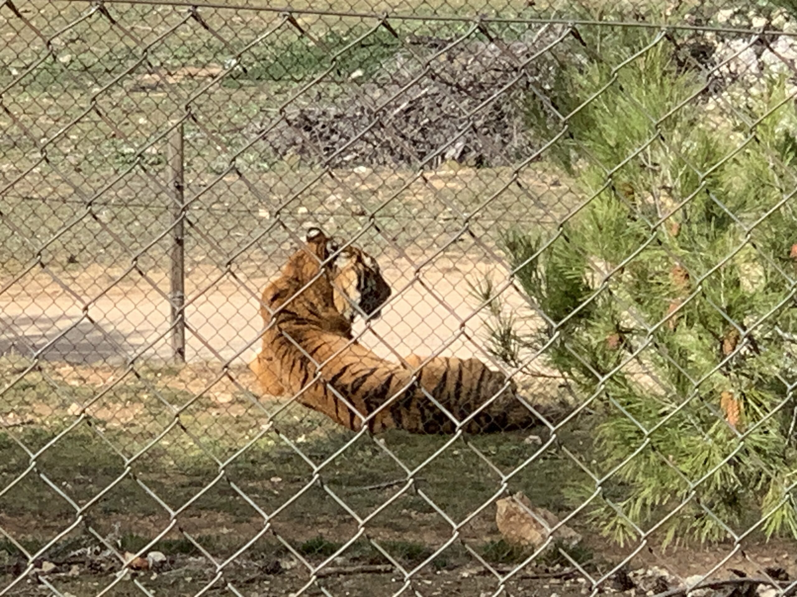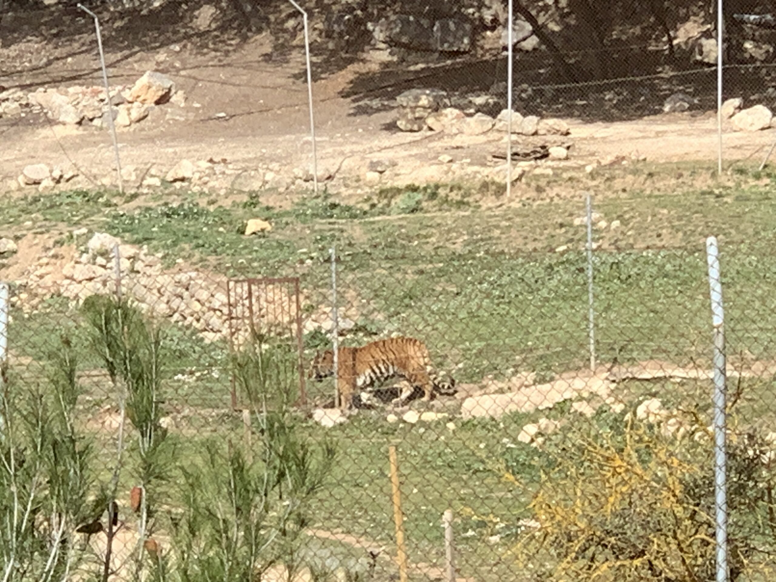Im Hinterland standen wir plötzlich vor dem Safari- Park Aitana. Zur Zeit ist er leider nur am Wochenende geöffnet. Wir waren aber sehr erstaunt und begeistert, dass das Gehege der Tiger sehr dicht an der Strasse liegt und man die Tiere von der Strasse aus sehr gut sehen kann! Einer der Tiger lag tatsächlich sehr nah an der Strasse. Leider konnten wir ihn nicht dazu bewegen, den Kopf in unsere Richtung zu drehen. Egal, was wir anstellten, drehte er maximal ein Ohr in unsere Richtung. 🐅🐅🐅