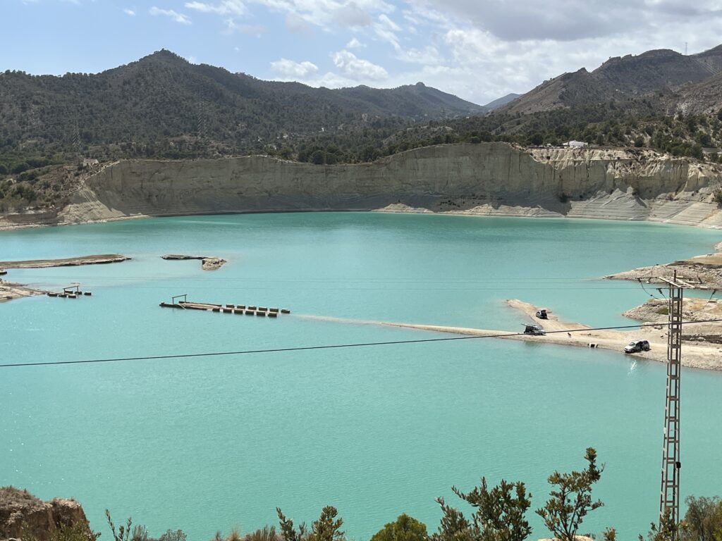 Hinter Orxeta legten wir einen kurzen Stop am Embalse D´Amadorio ein, den wir noch nicht kannten. Wieder war der Wassermangel sofort und deutlichst sichtbar. Hier mutet es etwas grotesk an, denn aus dem See tauchen Strassen und Gebäude wieder auf, die man einst geflutet hatte.