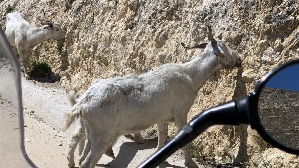 Als wir auf dem Weg in der Nachbartal waren, begegneten wir auf einer Gebirgsstrasse einer Ziegenherde. Das ist uns ja schon Mal passiert, aber so viele hatten wir noch nicht gesehen. Diese liessen sich von uns auch so gar nicht beirren.