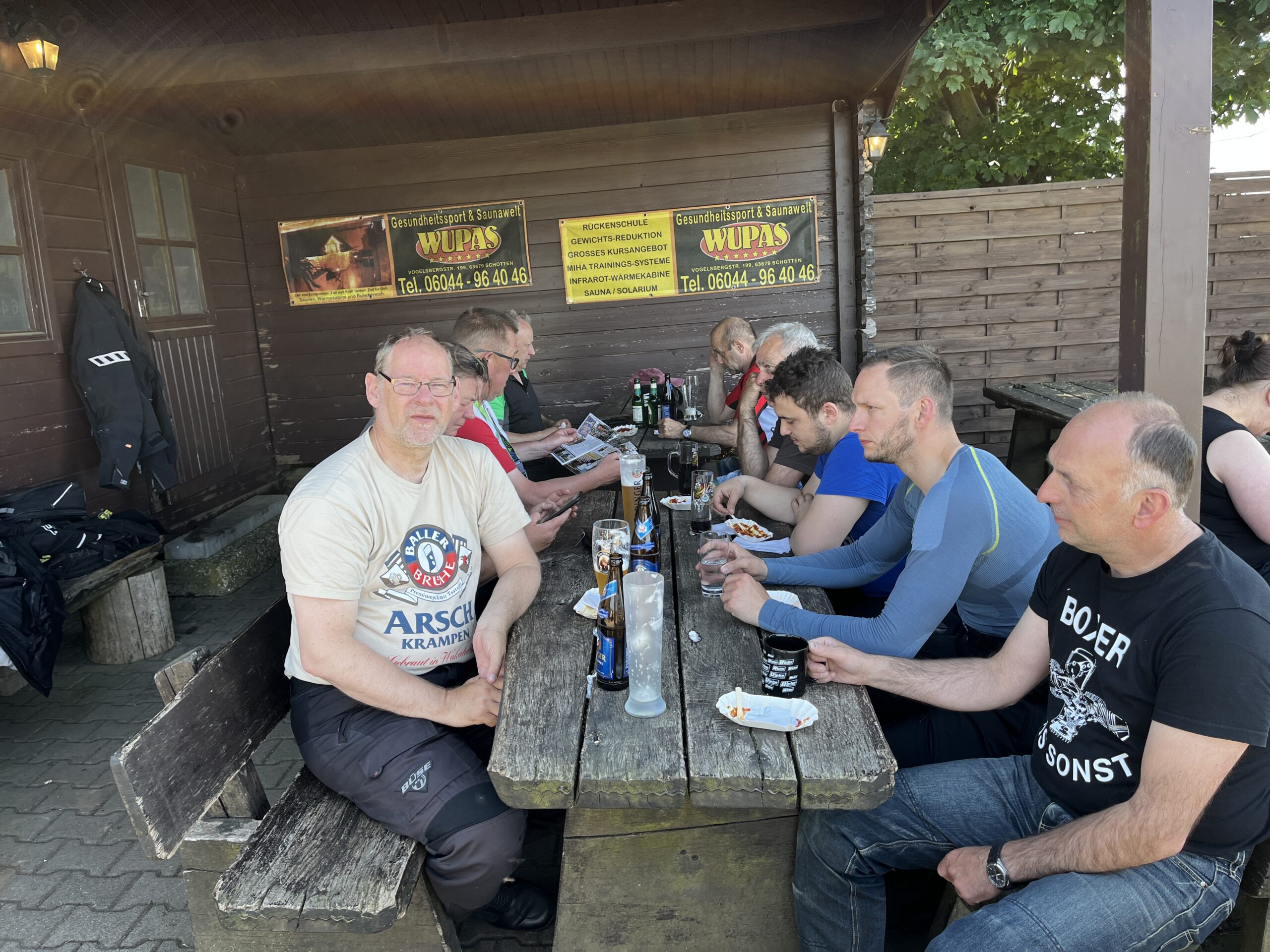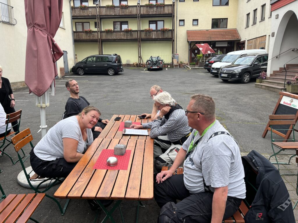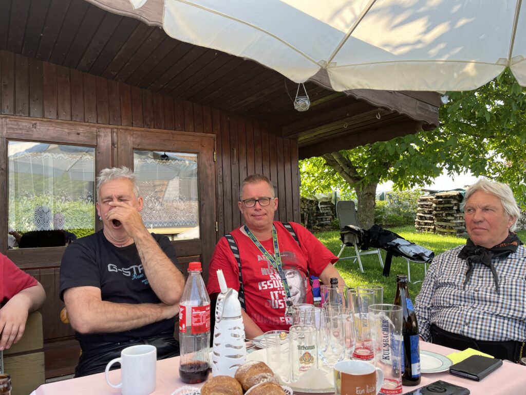 Am Abend gesellte sich unser Guide Martin im Biergarten zu uns. Er hatte schon letztes Jahr für tolle Touren gesorgt, die wir sehr genossen hatten. Diesmal hat er sich sogar Urlaub genommen, um alle Tage mit uns fahren zu können. Natürlich musste das Wiedersehen auch gefeiert werden!