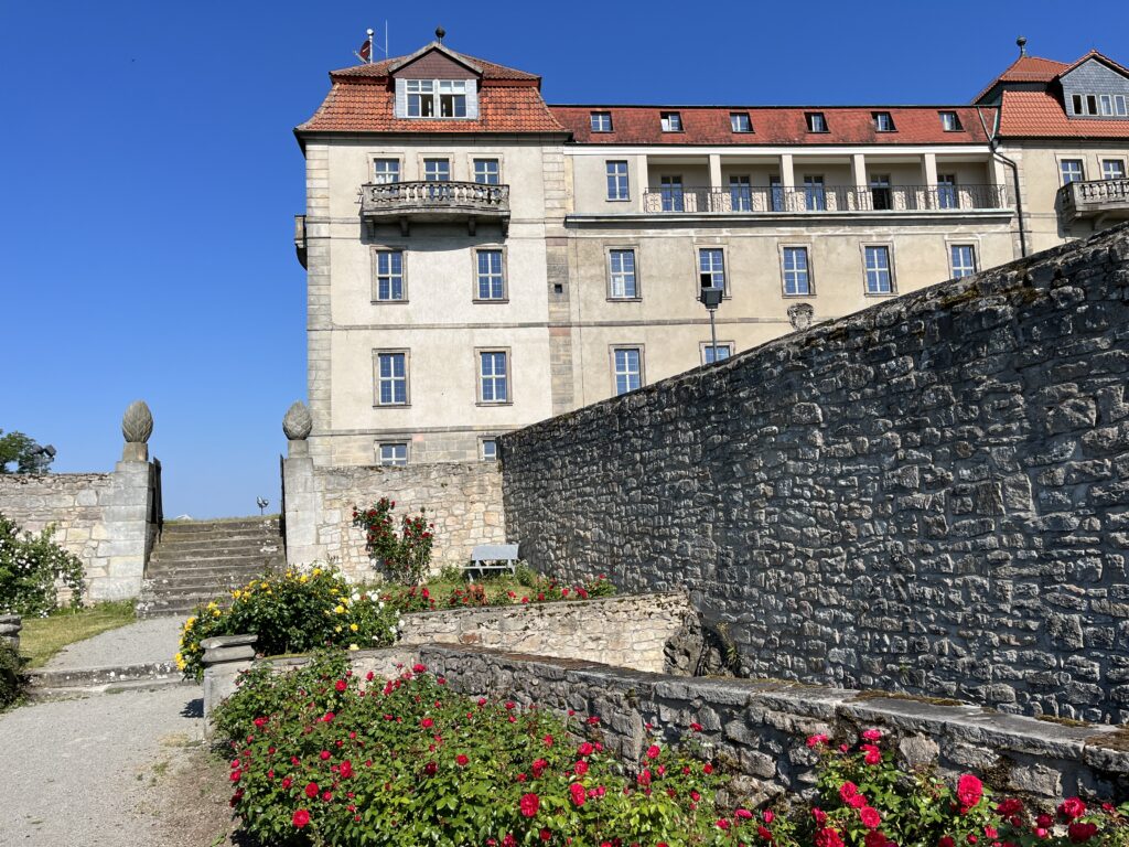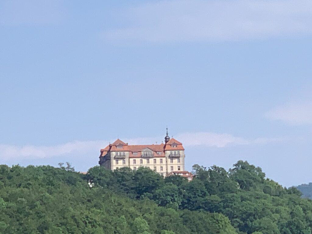 Am nächsten Morgen hatte Martin eine weitere Überraschung für uns. Wir durften uns das Schloss Bieberstein ansehen, dass wir aus der Ferne aus Alexandras und Martins Garten bewundert hatten! Es ist im Privatbesitz und dort ist eine Eliteschule untergebracht. Martin hatte eine Sondergenehmigung bekommen, mit der wir sogar durch das alte Haupttor fahren durften. Das Schloss ist sonst nicht für die Öffentlichkeit zugänglich und selbst angemeldete Besucher müssen außerhalb parken.