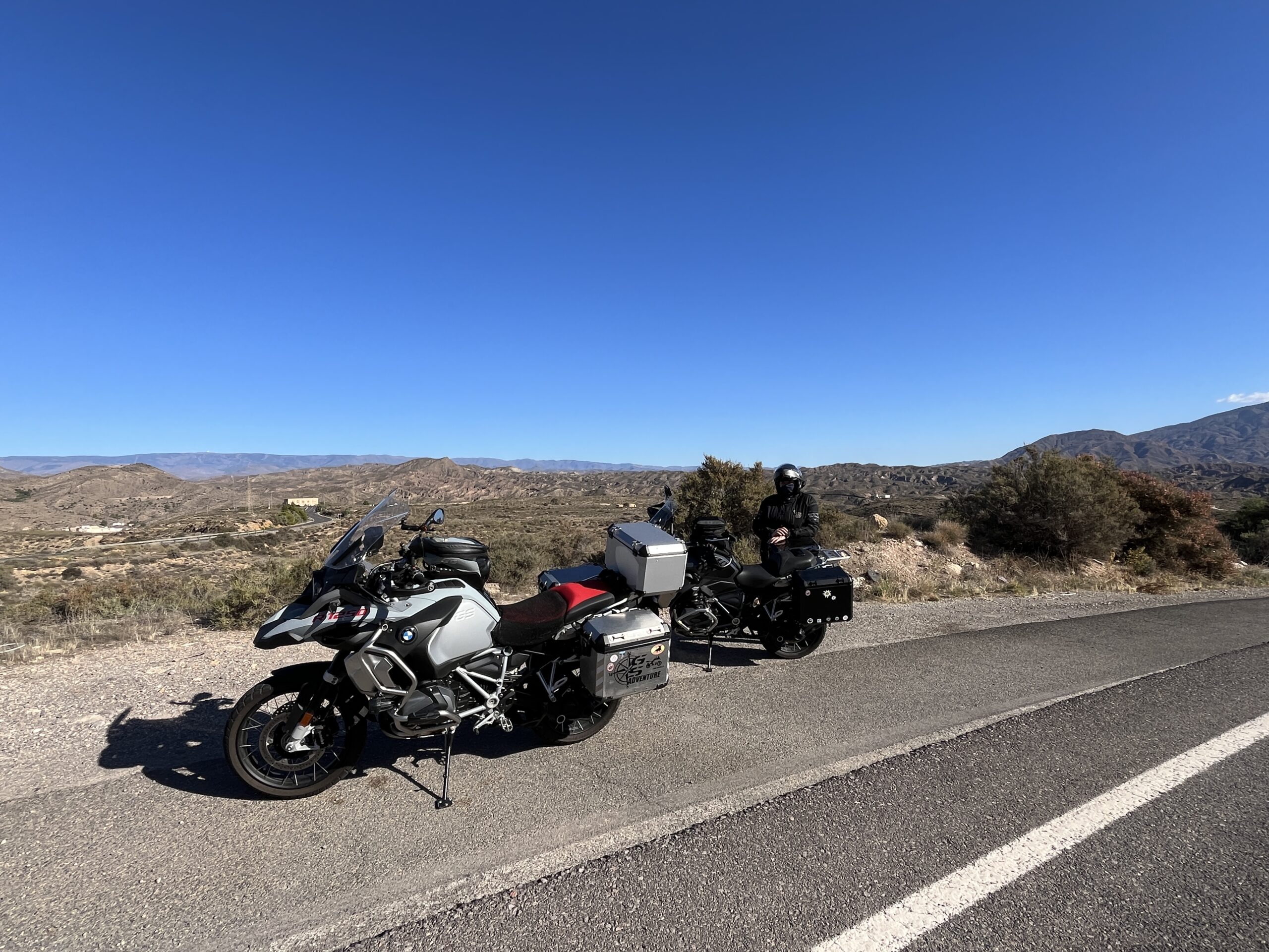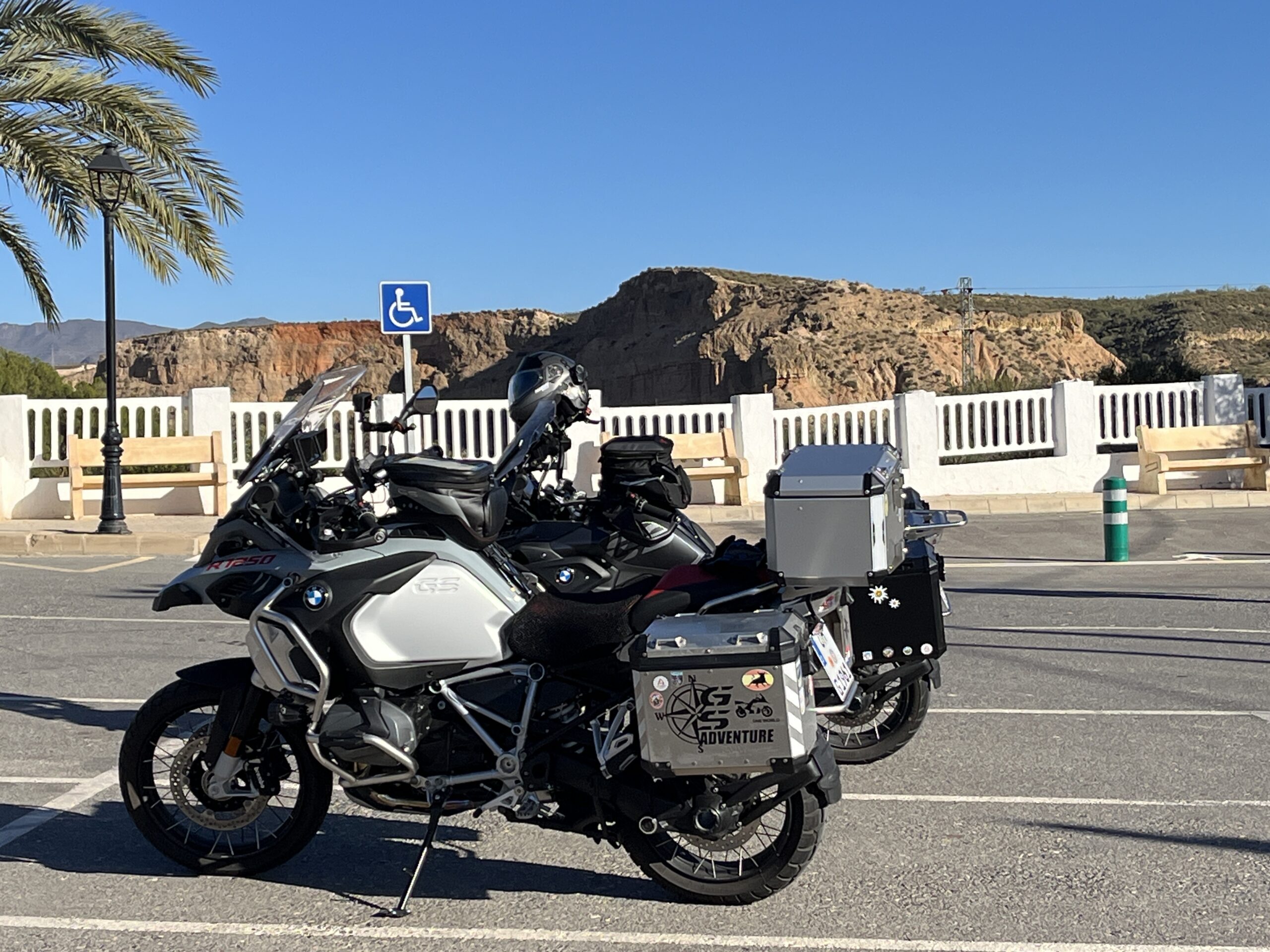 Parkplatztechnisch haben wir heute richtig Glück gehabt. Unser Plan, die Motorräder um die Ecke vor eine geschlossenes und zugemauerte Disko zu stellen, ist der örtlichen Polizei etwas missfallen. Wir sassen beim Abendessen, als wir die Polizisten bemerkten, die um unsere Motorräder schlichen. Natürlich sind wir schnell hinaus gegangen und haben gefragt, ob es ein Problem mit den abgestellten Motorrädern gibt. Die Polizei erklärte, sie hätten uns abschleppen lassen,da das Privatgrund ist. Aber wir bekamen 20 min Zeit, wegzufahren. Der Kellner unseres Hotels bekam das mit und bot uns an, vor dem Hotel auf einem kleinen, schmalen Fleck zu parken. Gesagt getan. Mal schauen, wie wir morgen wieder herauskommen. 😉