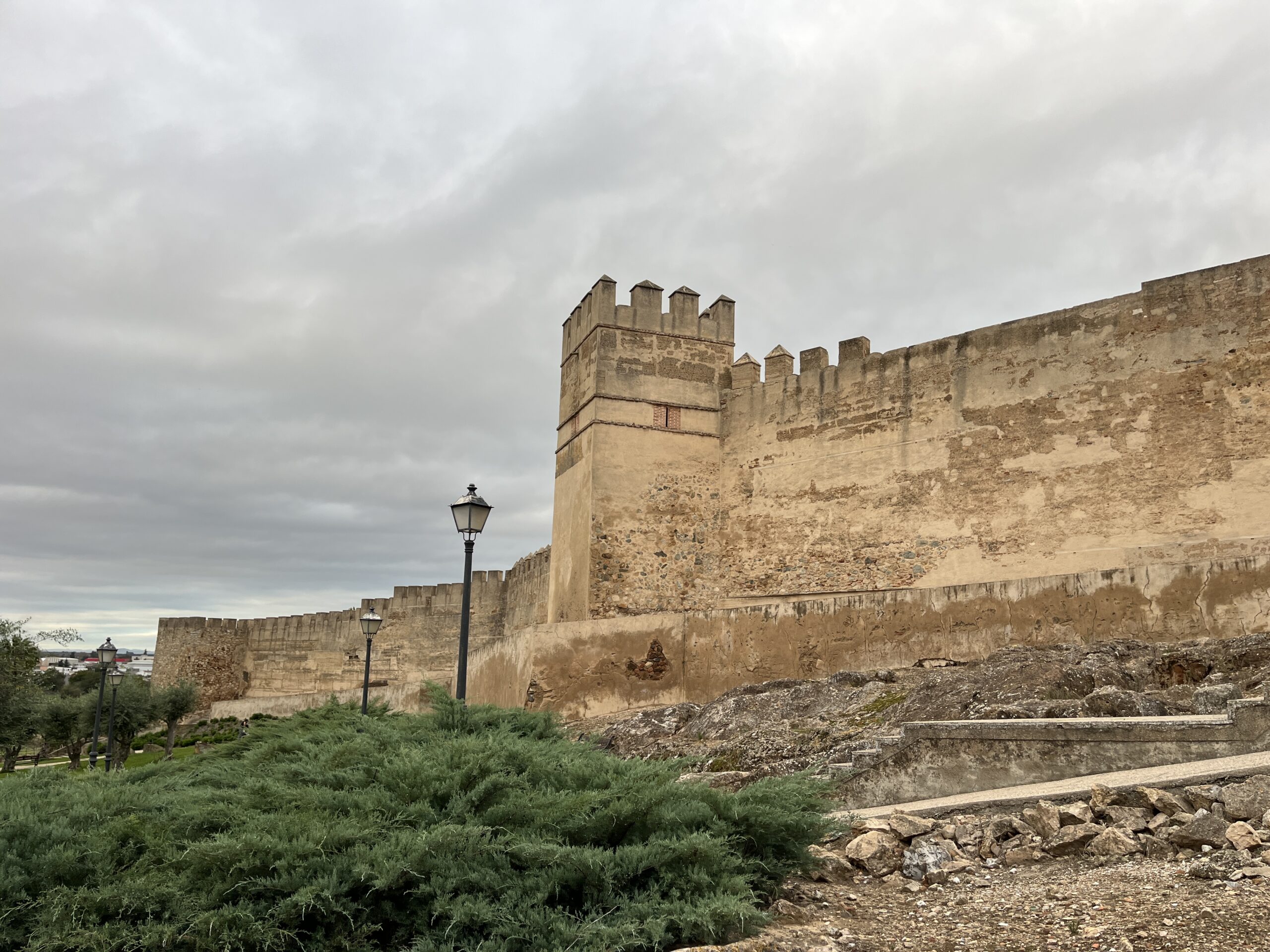 Frisch im riesigen Bad heiß geduscht, hatten wir vor dem Essen noch Zeit für einen kleinen Rundgang im Ort Badajoz. Wir schauten uns die Reste einer großen, maurischen Festung an, deren Zitadelle die größte Europas war.