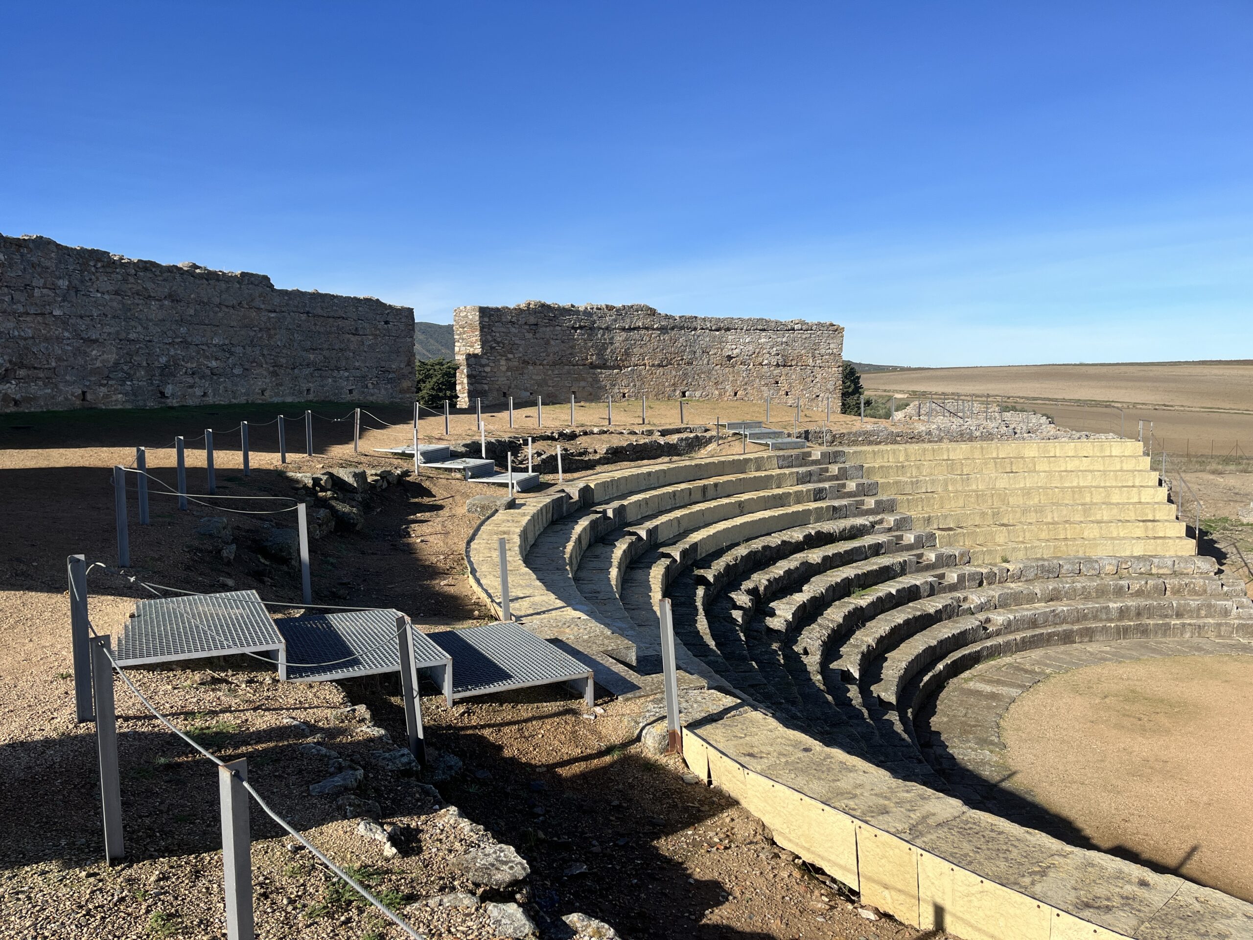 Kurz hinter Zafra entdeckten wir einen Wegweiser zu einem römischen Amphitheater. Kurzerhand entschieden wir zu schauen, was dahinter steckt. Wie sich herausstellte, handeltet es sich nicht nur um ein Theater, sondern man hatte dort ein ganzes römische Dorf entdeckt, dass im 1. Jahrhundert n.C. erbaut wurde, Ciudad romana de Regina. Das Theater fasste einst 1000 Zuschauer. Das Dorf existierte bis ins 4. Jahrhundert.