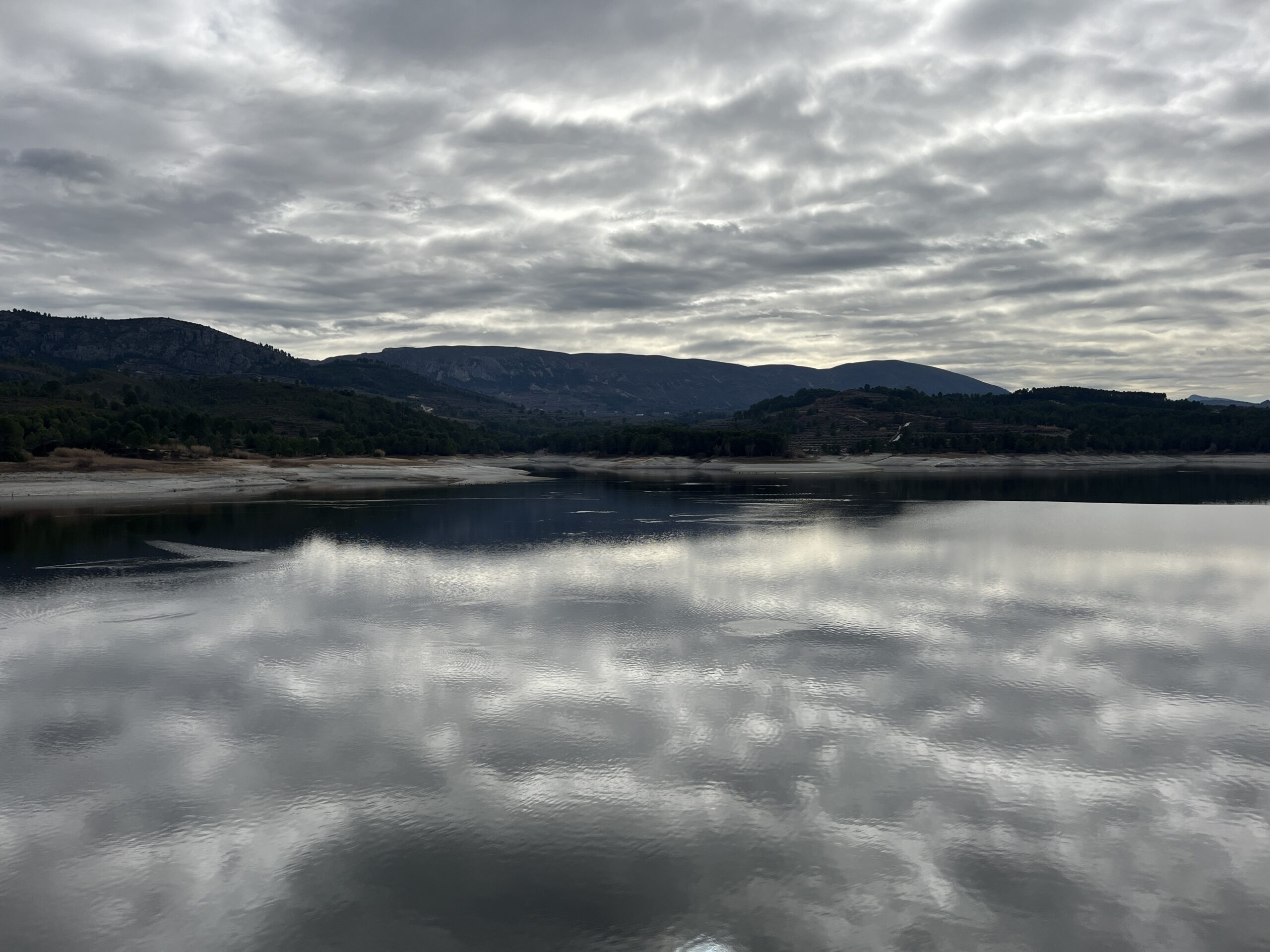 Gestern haben wir uns kurzerhand zu einer gemeinsamen Tour verabredet. Gesagt, getan. Heute Morgen trafen wir uns bei bedecktem Wetter am Eingang des Campingplatzes. Wir hielten einen Kennlern- Plausch und fuhren los. Von Benigembla durch Pia de Petracos nach Vall d`Ebo fuhren wir bis kurz hinter Planes. Hier machten wir am Stausee Embassement de Beniarres eine kleine Pause. Noch während unserer Pause blitzte die Sonne kurz auf.