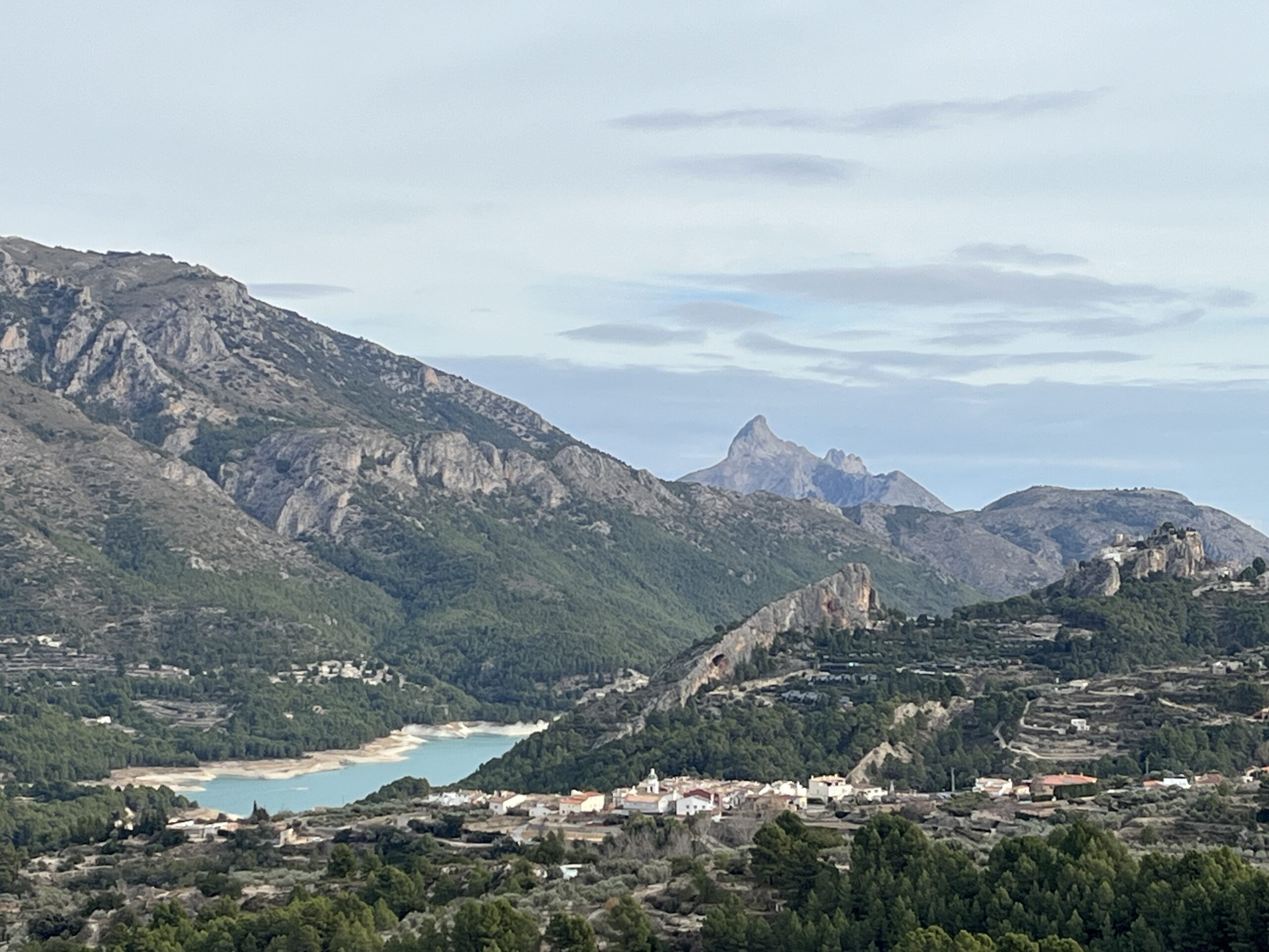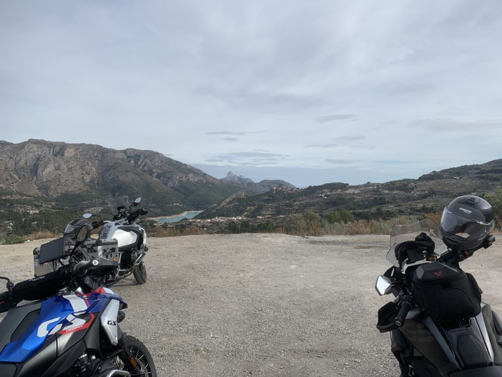 Weiter fuhren wir über Benasau über Confrides bis kurz vor Guadalest. Dort gibt es einen ebenen Platz, von dem man eine wunderbare Sicht auf die Festung und den Stausee von Guadalest hat. Der See leuchtet in der Sonne so schön türkis. Auch dies ist einer unserer Lieblingsausblicke. Natürlich nutzten wir auch diese Pause für eine gute Unterhaltung. 😉