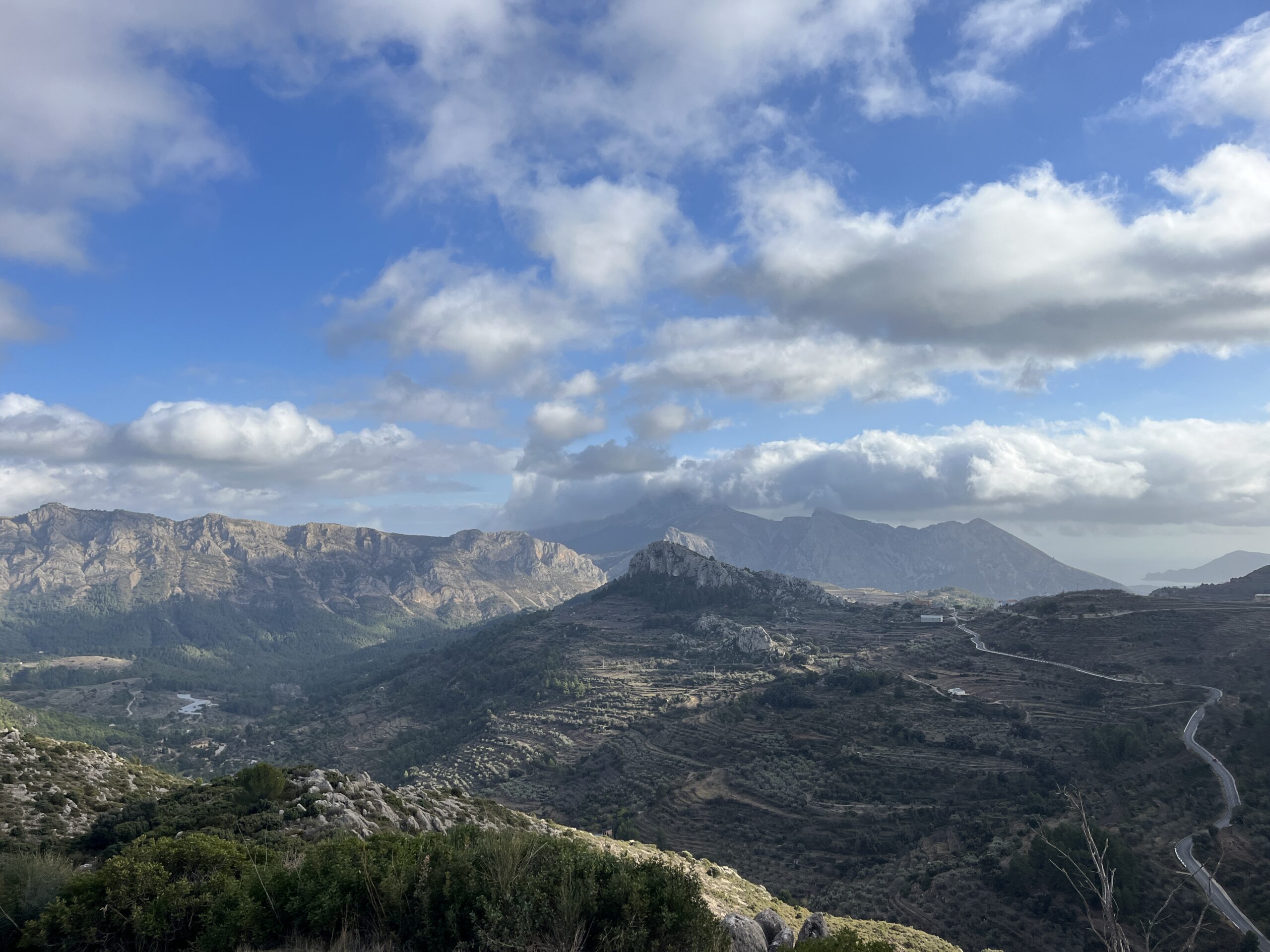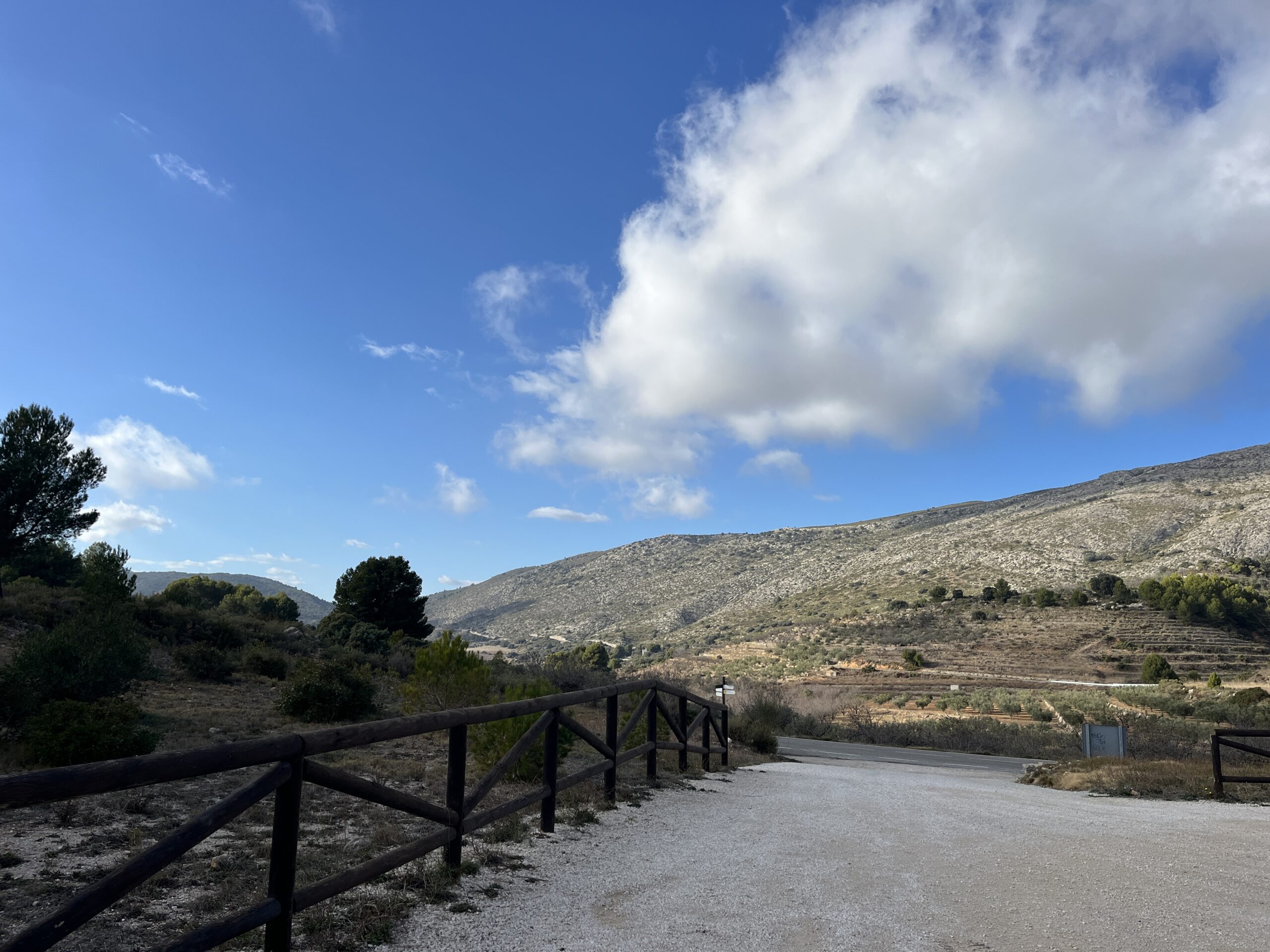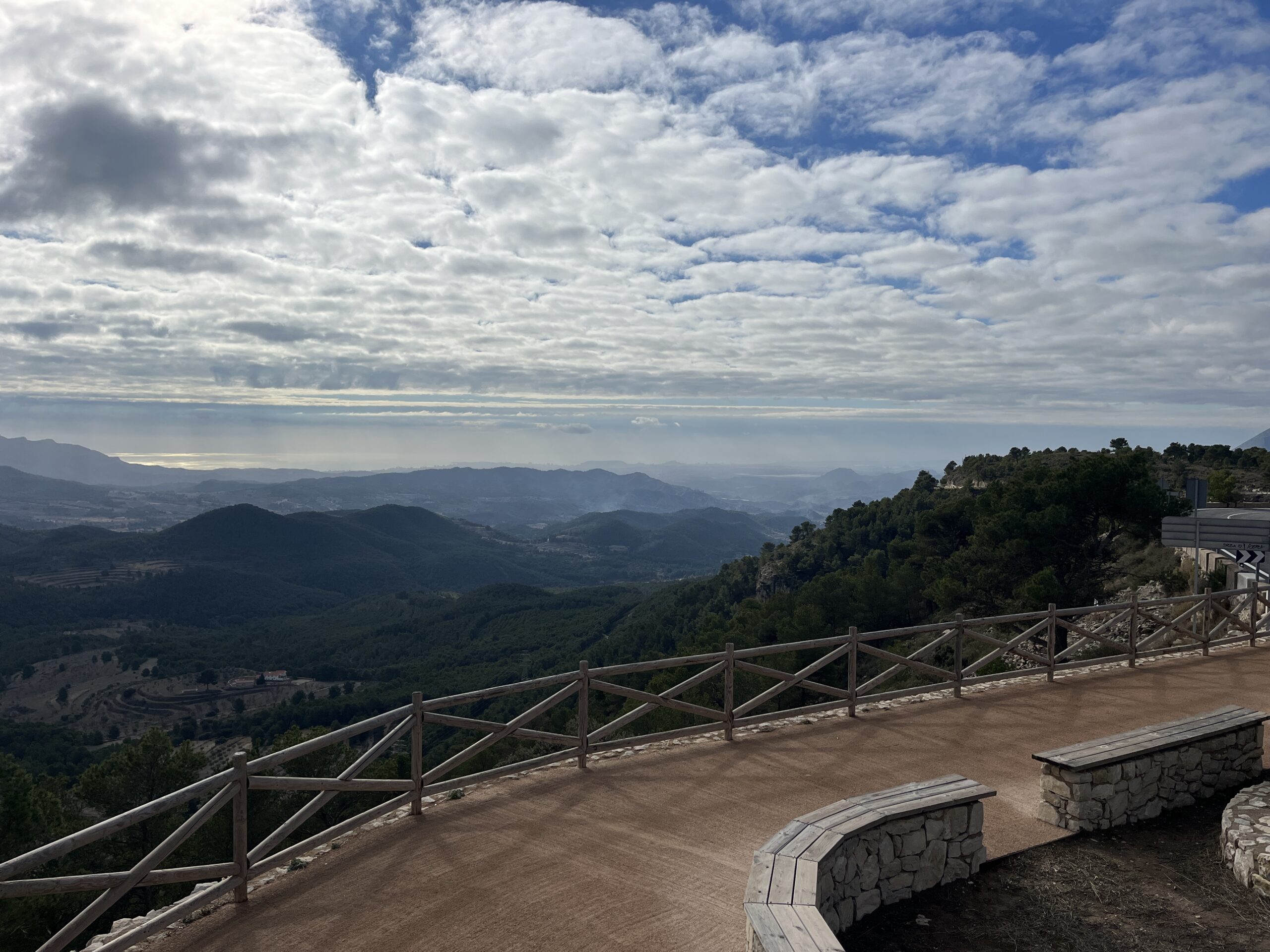 So gelangten wir zu einem weiteren Aussichtspunkt, der zu Tarbena gehört. Die Aussicht hier Richtung Benidorm war auch etwas diesig. Mittlerweile hatten wir aber schon zweistellige Temperaturen! 😃
