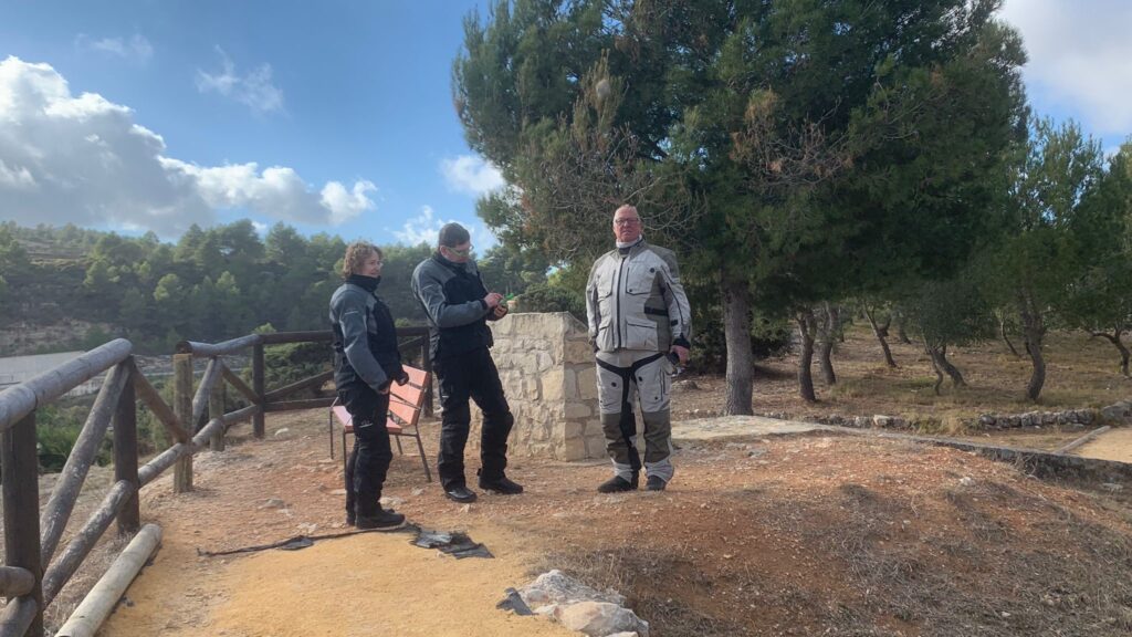 Am Samstag Abend dachten wir, dass es ja schön wäre, mit Carsten und Katharina am Sonntag eine kleine Runde zu drehen. Eine WhatsApp wurde an Carsten geschickt und die positive Rückmeldung kam postwendend. Schnell hatten wir eine Tour parat und trafen uns am Sonntag Morgen um 10 Uhr am Wohnmobilstellplatz. Bei unserer Abfahrt in Benissa war es frisch. Zum Glück hatten wir uns für einen langärmeligen Unterziehen entschieden. An der Küste ist es im Vergleich zum Hinterland deutlich wärmer. Pünktlich am Treffpunkt angekommen, fuhren wir dann über Castell de Castells, Gorga, und Alcoy zum Puerto de la Carrasqueta auf 1024 m. In der Höhe war es dann doch schon sehr frisch mit einstelligen Temperaturen. Zum Glück gibt es ja Griff- und Popo-Heizung, wenn auch nicht für alle. 😉