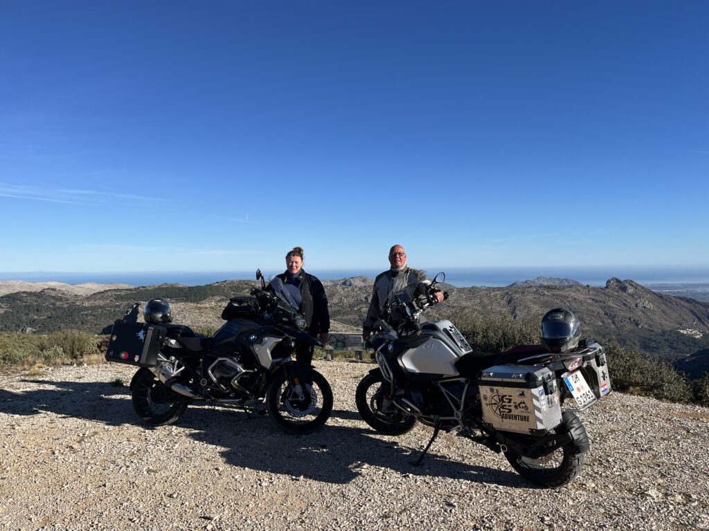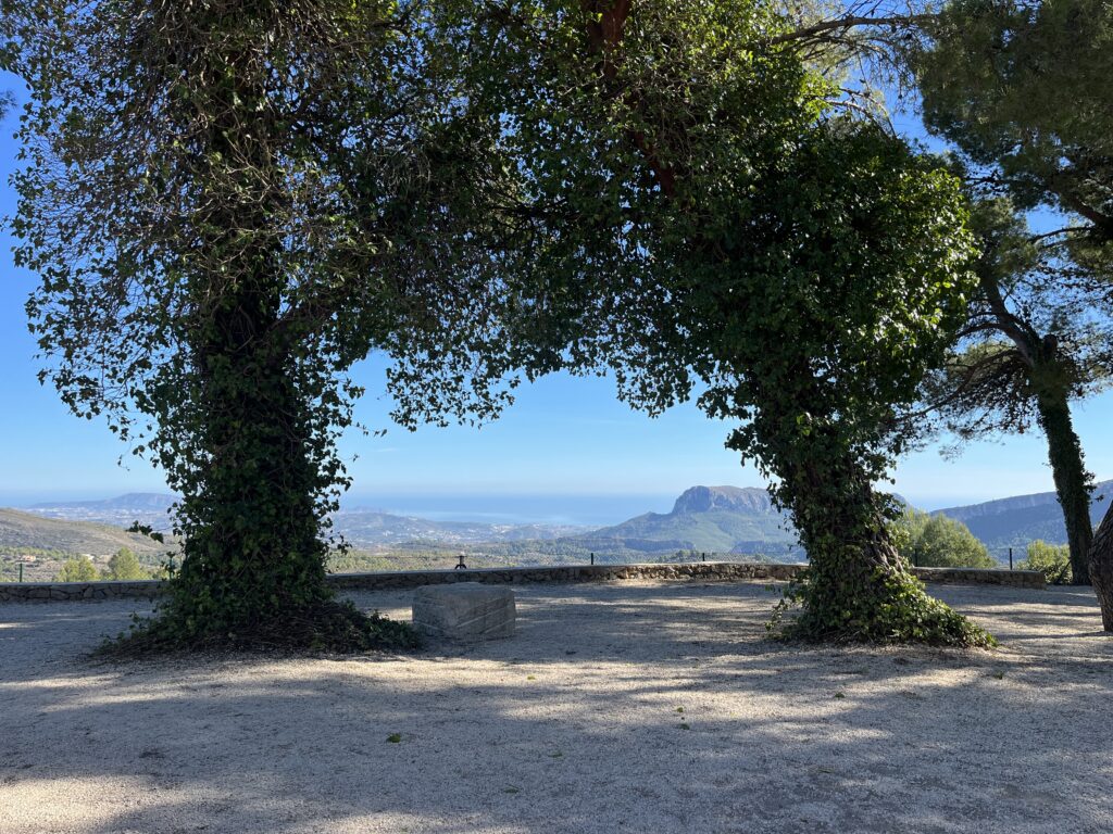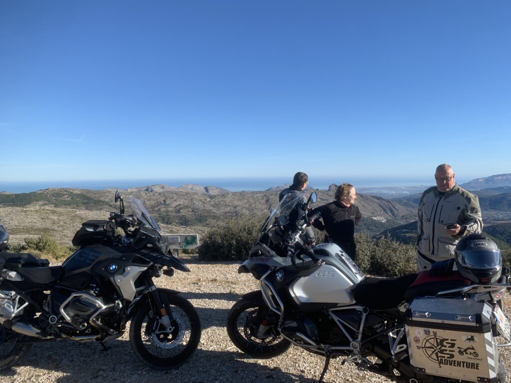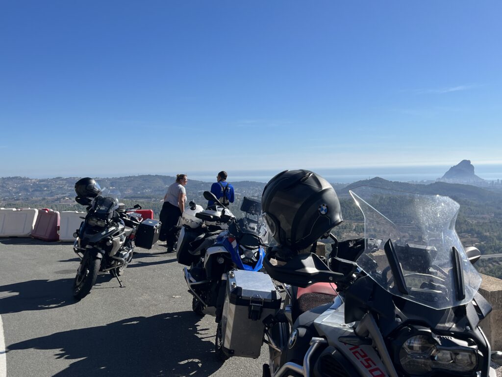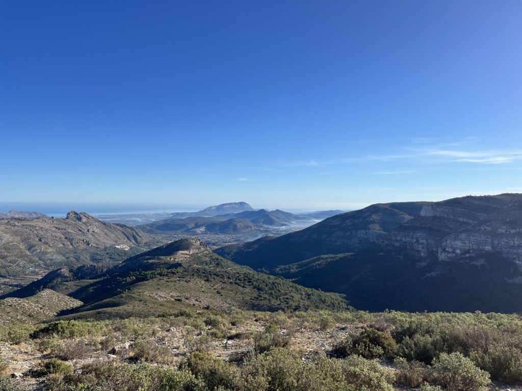 Gut gesättigt fuhren wir die schmale Strasse weiter über den Port de Bernia, hinunter nach Xalo und Lliber nach Benitachell. Mittlerweile hatten wir 23°C, die wir sehr genossen. In Benitachell befindet sich die Auffahrt zum Cumbre del Sol. Der Cumbre ist ein Wohngebiet, das mit vielen Ferienimmobilien für jeden Geldbeutel bebaut ist. Der Gipfel des Cumbre liegt auf 422 m und bietet eine hervorragende Sicht über die umliegenden Orte und Berge und auch auf Ibiza. Das war heute sogar möglich! 👀
