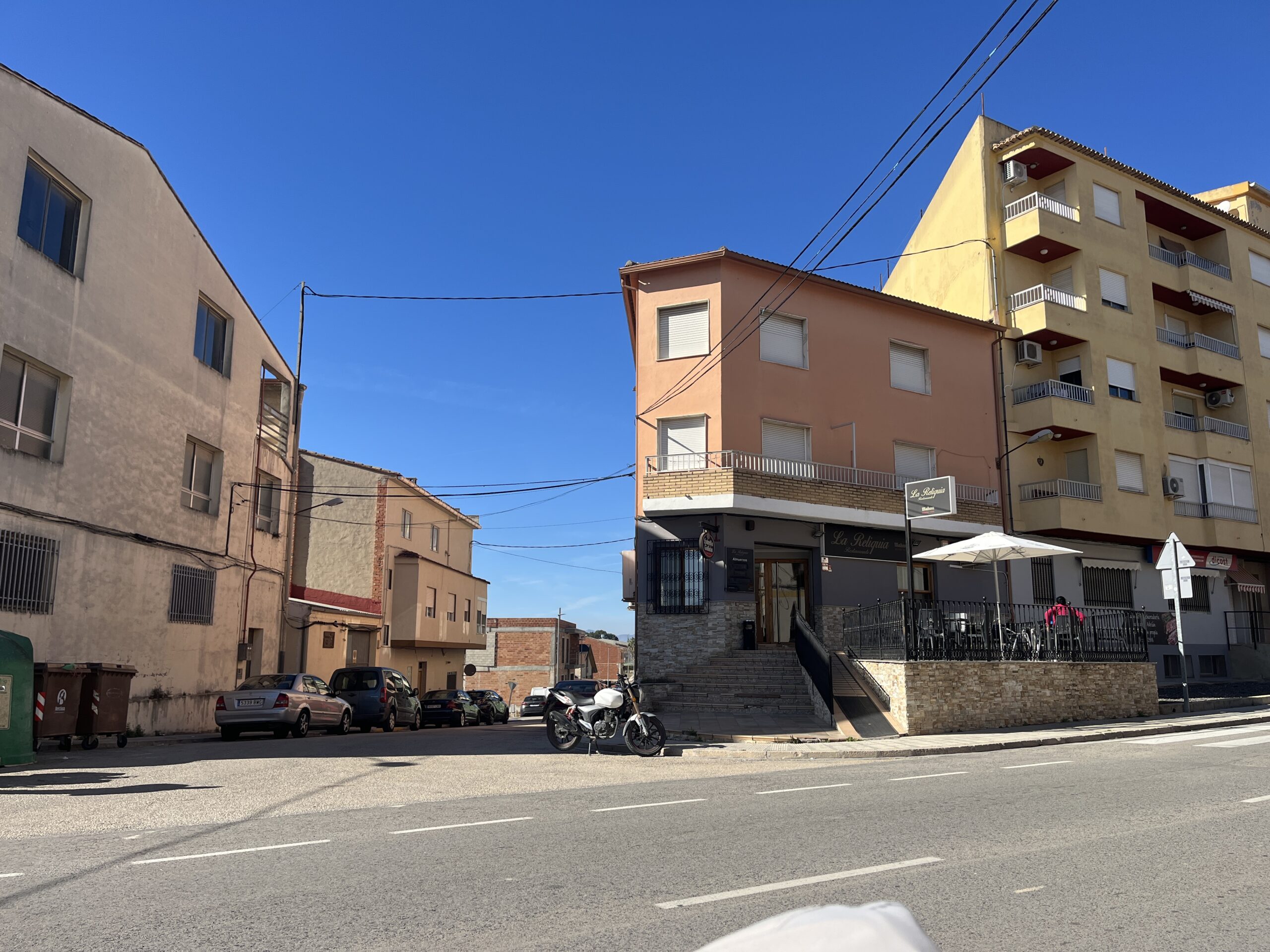 Hinter Benganim liegt La Pobla del Duc. Dort fanden wir direkt an der Hauptstraße ein kleines Café, wo wir eine Pause einlegten. Wir genossen den Kaffee in der Sonne. Mittlerweile zeigte das Thermometer 21°C. 😎