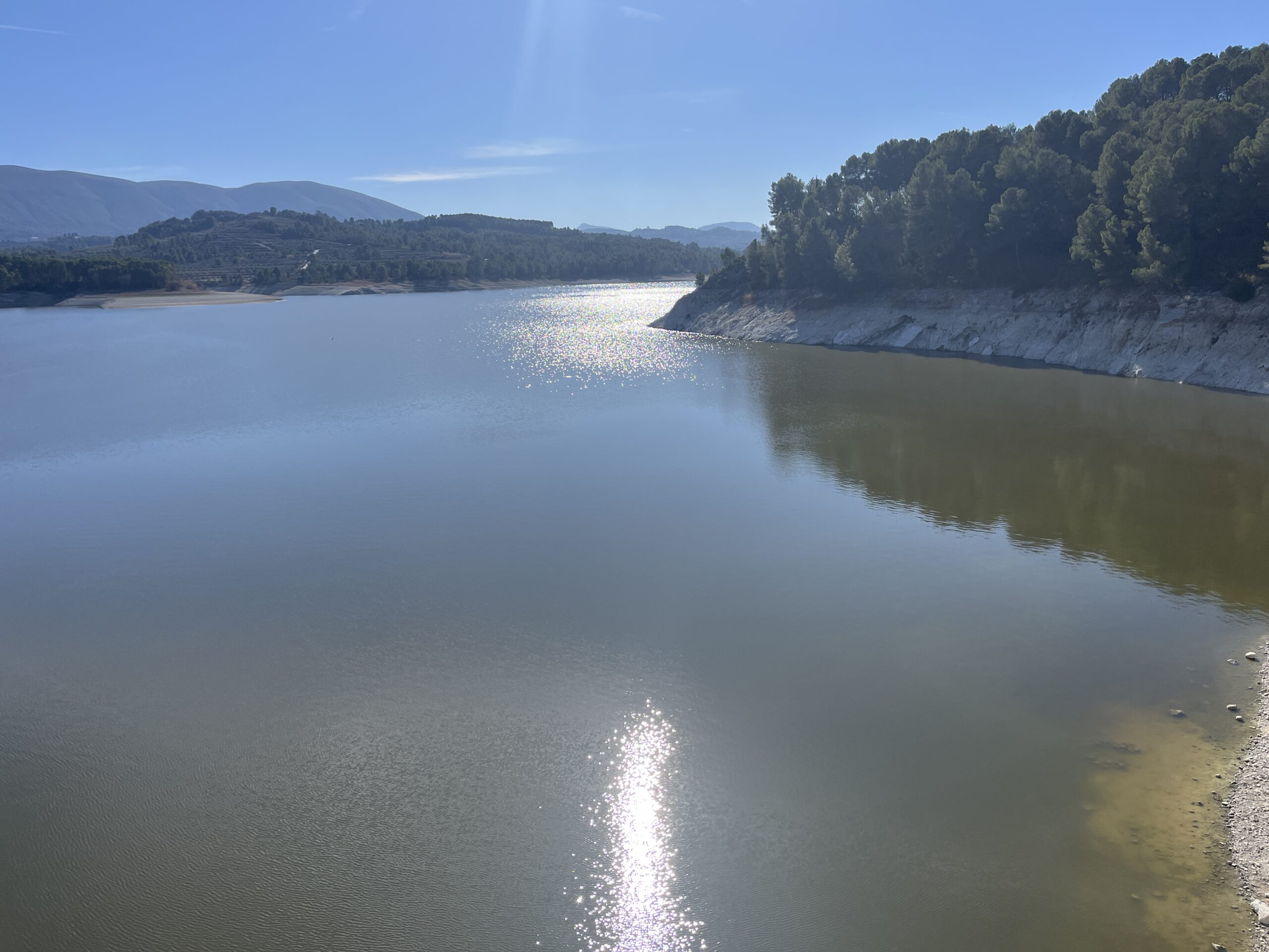 Eine 3/4 Stunde später machten wir uns wieder auf den Weg. Hinter Salem machten wir auf dem Berg noch eine kurze Pause an der Communidatgrenze,(Valencia/Alicante), denn auch hier hat man einen tollen Blick über das Tal, aus dem wir gerade kamen und auch in das vor uns liegende Tal, in dem sich der Stausee Beniarres befindet. An dem mussten wir dann natürlich auch nochmal anhalten. 😉