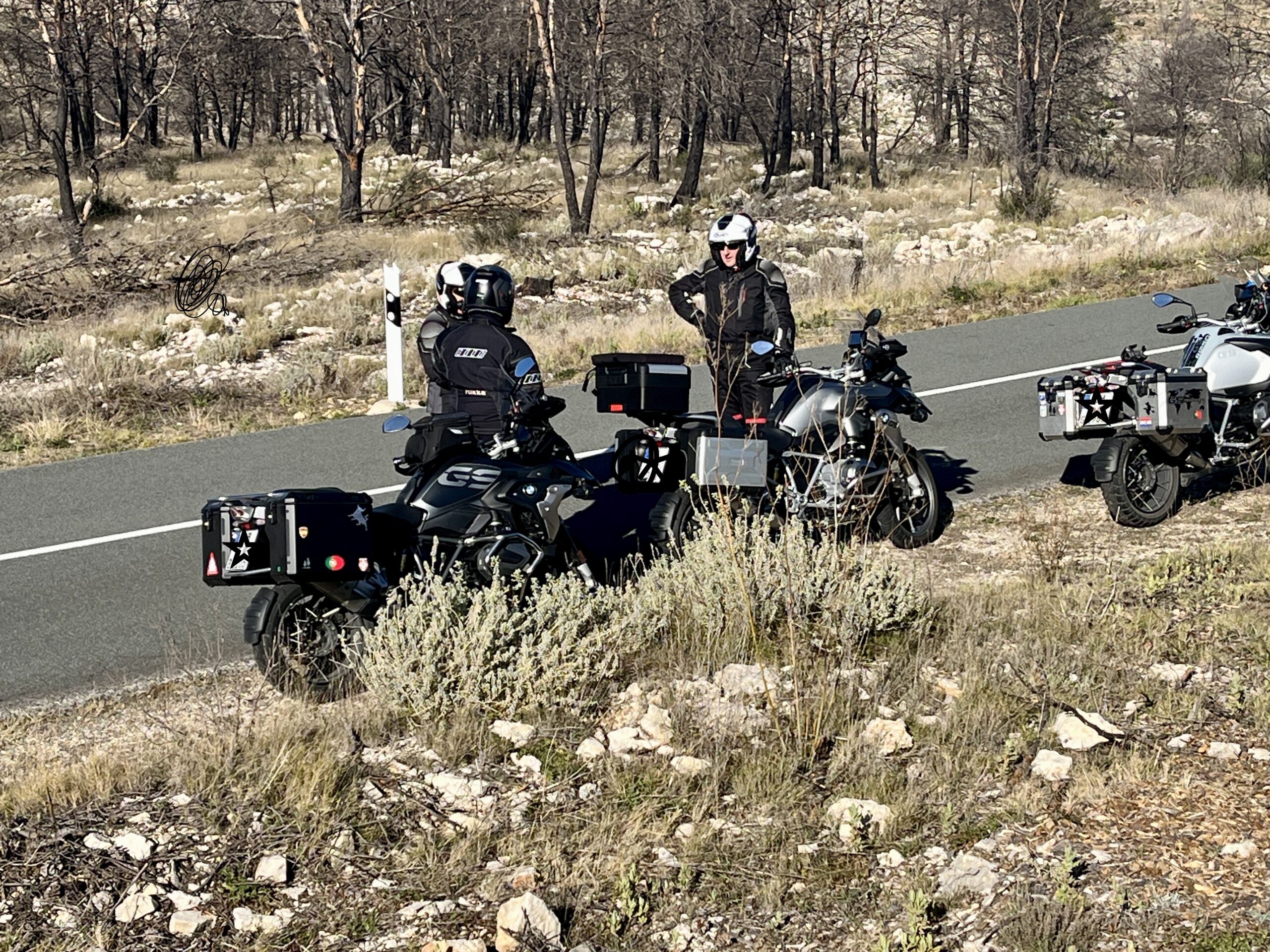 Die neuen Reifen ( Conti Trail Attac 3), die Peter Zwaan vor Kurzem auf die schwarze BMW gezogen hat, lässt sich sehr gut fahren. Er klebt deutlich besser, als der Bridgestone, der von BMW ab Werk aufgezogen wurde. Er vermittelt deutlich mehr Vertrauen und Halt. Ein klares Votum für den CTA3 von uns! Natürlich war auch der Service von Peter wie immer sehr gut. Wir waren einfach auf Verdacht zu Ihm gefahren und konnten das Motorrad sogar gleich dort lassen. Zwei Tage später konnten wir es fertig wieder abholen. 👍👍