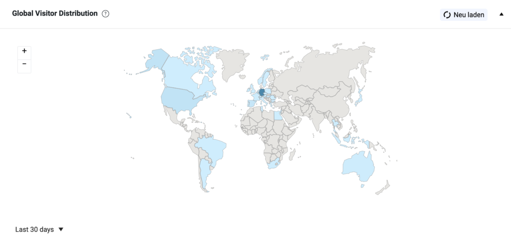 Hier noch etwas Anderes….. Wir haben heute Mal die Statistik unserer Seite studiert und waren etwas sprachlos. Wir haben nicht damit gerechnet, WO wir ĂŒberall gelesen werden! In allen blau hinterlegten LĂ€ndern haben Menschen allein im letzten Monat unseren Blog gelesen! Wir sind baff! Aber seht selber!