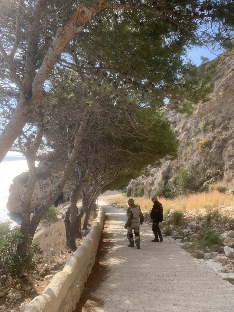 Ebenfalls am Cumbre del Sol liegt die Bucht Cala del Moraig. Sie war unser 2. Tagesziel. Wir stellten unsere Motorräder ab und liefen das letzte Stück zu Fuß. Die Steigung ist enorm! 😅