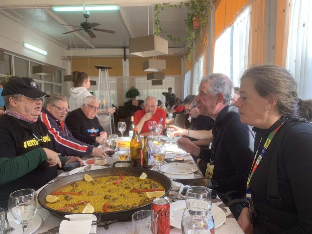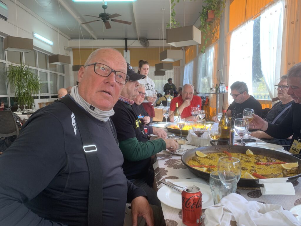 Während wir dort saßen, sagten einige in der Gruppe, dass sie Hunger hätten und gerne die örtliche Spezialität, die Paella mit Kaninchen und Schnecken essen möchten. Nach wenigen kurzen Telefonaten fand sich ein Restaurant, dass Platz für uns hatte. Das El Poli in Pinoso war schnell erreicht. Es war schon alles für uns eingedeckt, als wir ankamen.