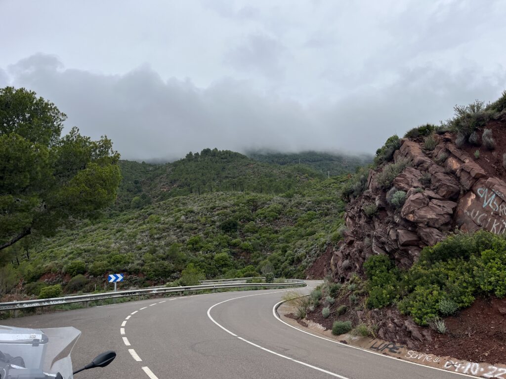 Gegen 10:30 Uhr zogen wir unsere Regensachen an und fuhren los. Wegen des Wetters nahmen wir bis kurz hinter Valencia die Autobahn. Regen begleitete uns bis hinter Benicassim.
