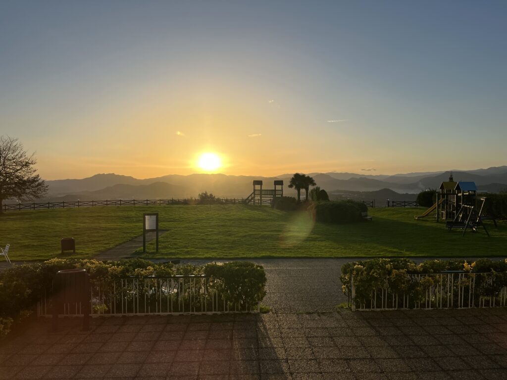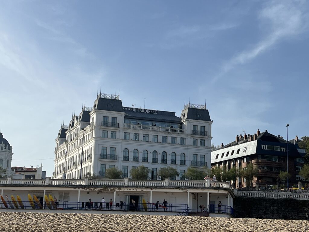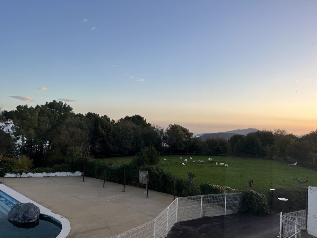 Wir hatten uns das Hotel Gudamendi in Donostia eingemietet. Die Lage ist herrlich. Es liegt auf einer Anhöhe über San Sebastián und wir hatten einen schönen Blick auf den Atlantik. Das Zimmer war ok. Einen kostenlosen Parkplatz gibt es auch. Das Essen/ Getränke waren teuer und nur Convignion. Aber es war ja nur für eine Nacht.