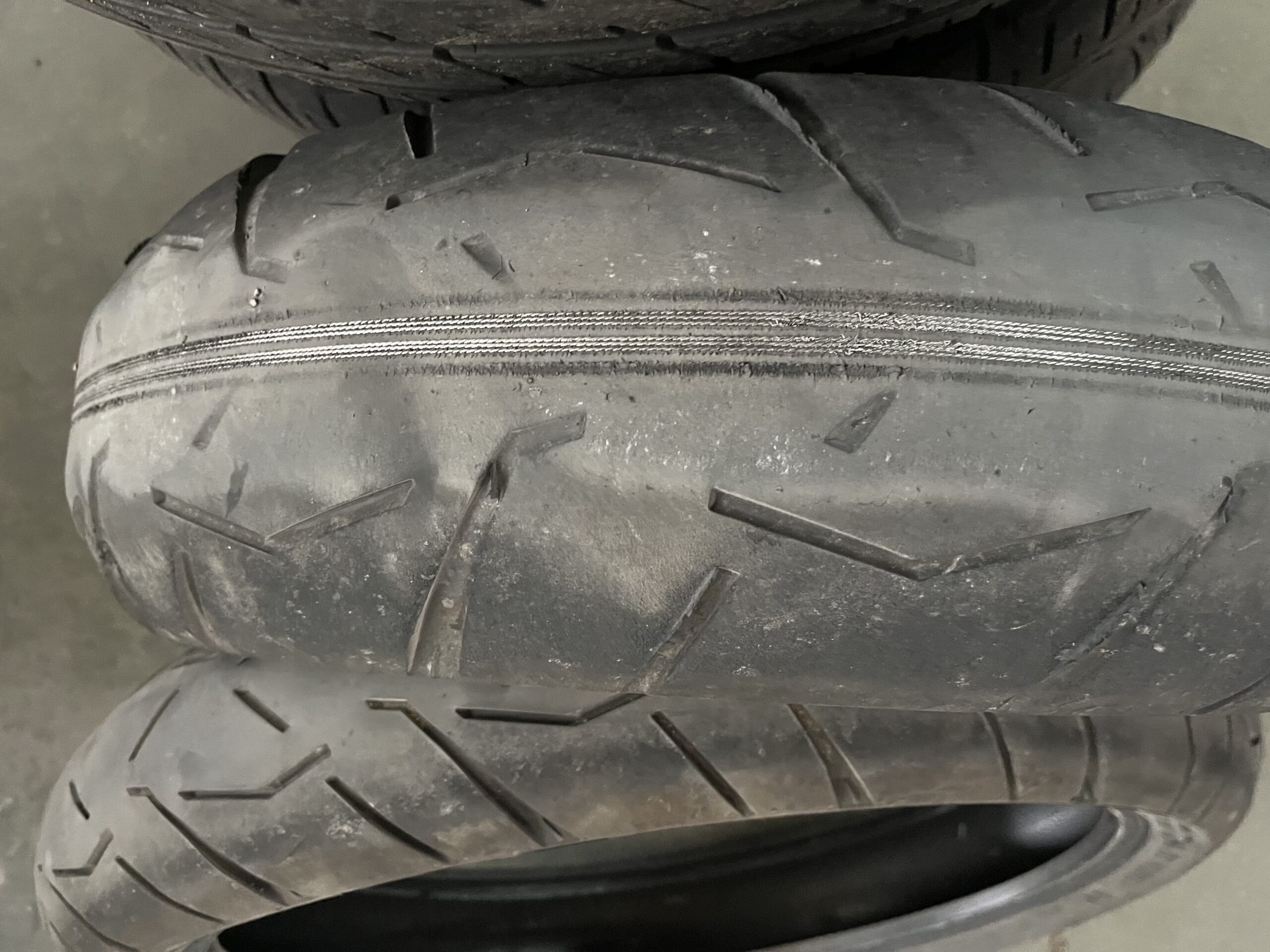 Als wir ankamen, war das Tor der Halle offen. Wir fuhren hinein. Nach kurzer Unterhaltung begutachtete der Mechaniker den Schaden und meinte, er könne zu morgen Vormittag einen Reifen besorgen und montieren! Wenn, dann wollten wir natürlich beide tauschen. Er telefonierte mit seinem Lieferanten und tatsächlich gäbe es einen Satz Reifen für die GS, der verfügbar war. Conti gab es nicht. Es wurde der Dunlop Roadsmart IV. Da haben wir wirklich Glück gehabt, dass das so geklappt hat!