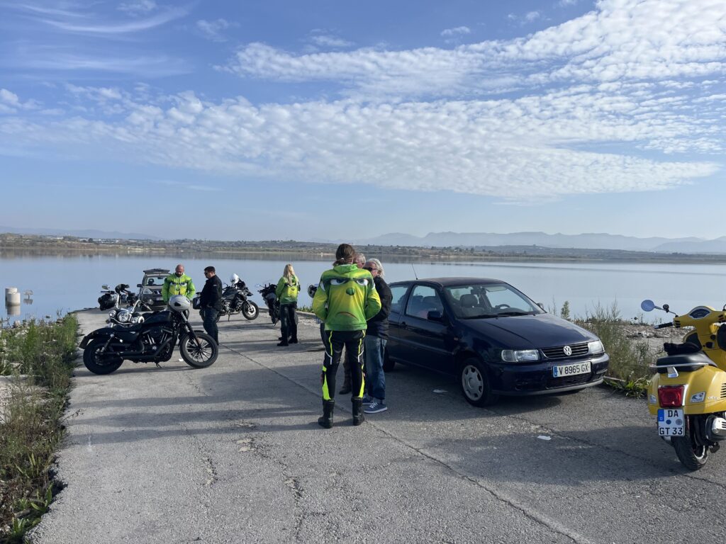 Facebook macht ja Vieles möglich. Gerald hat eine Gruppe von Motorradfahrern aus Denia und Umgebung ausfindig gemacht. Klaus, der Admin der Gruppe, bot vorletztes Wochenende eine Tour an, bei der wir uns gleich anschliessen konnten. Uns erwartete ein bunt gemischter Haufen netter Menschen. Wir sind sind ca. 200 Km durch das Hinterland gefahren. Zwischendurch gab es Pausen für Kaffee, Mittag und einen Plausch. Das war ein schöner Tag mit neuen, interessanten Gesichtern.