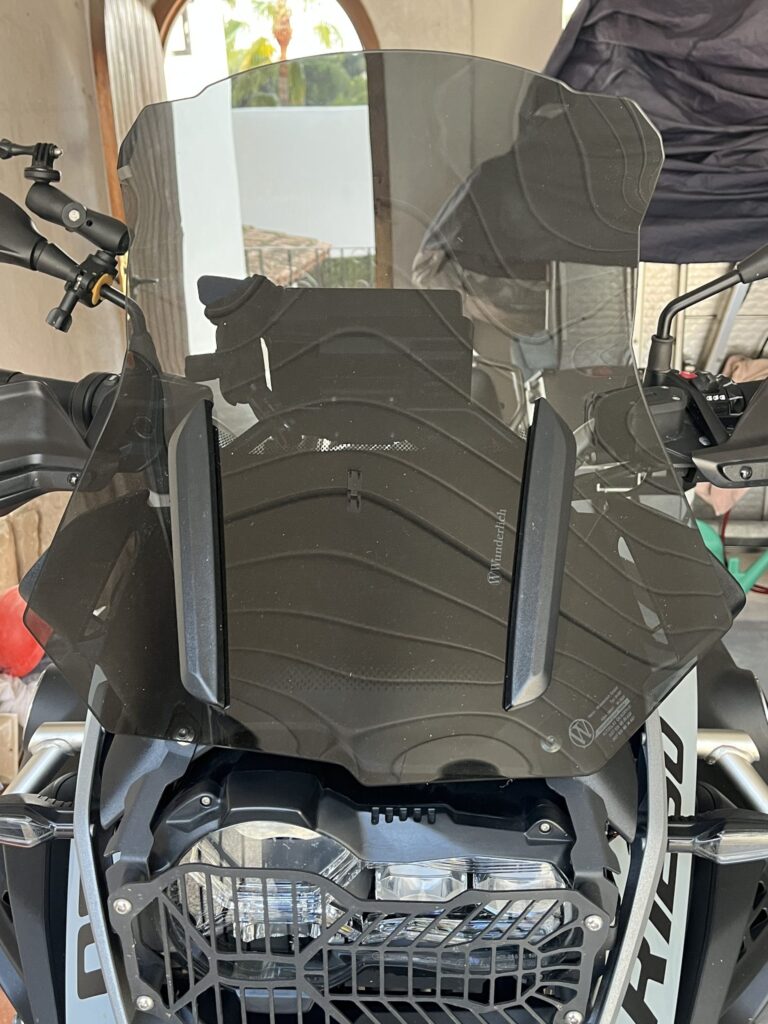 Da das mit der Post nun gut geklappt hat, entschieden wir uns, eine neue, etwas größere Scheibe für die Adventure zu bestellen. Getönt sollte sie sein. Ein Versuch, die Scheibe bei Touratech zu bestellen, scheiterte. Die Seite wolle in der Anmeldung eine spanische Steuernummer, die wir nicht haben.