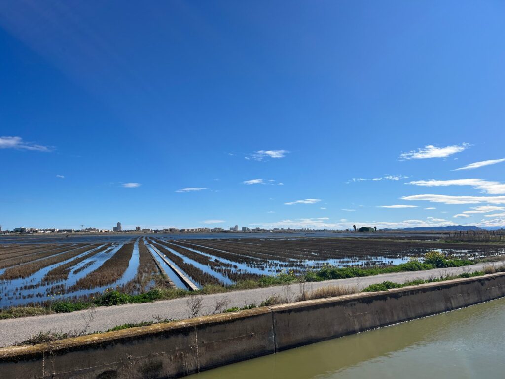 Frisch gestärkt ging es weiter nach El Palmar. Der Ort liegt ca. 20 Km vor den Toren Valencia direkt im UNESCO- Naturpark Albufera. Er ist Teil des Ramsaabkommens, das die UNESCO im Jahr 1971 ins Leben gerufen hat, um weltweit Gebiete zu schützen. Albufera ist eines der wichtigsten europäischen Feuchtgebiete, das von Kanälen durchzogen ist und eine riesige Lagune hat. Es handelt sich um den größten Süßwassersee Spaniens. Viele seltene Vogelarten leben hier. El Palmar ist ein altes Fischer- und Bauerndorf, das ursprünglich auf einer Insel in der Lagune lag. Heute ist der Ort umgeben von Reisfelder und Gemüseanbau. Auch heisst es, der Ort sei die Wiege der valencianischen Paella.