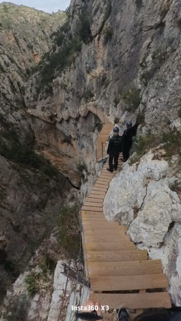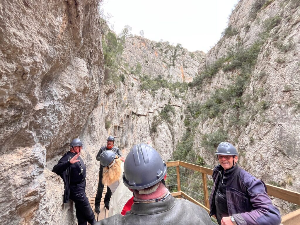 Die erste Tour musste wegen des schlechten Wetters leider ausfallen. Am 01. Februar trafen wir uns dann endlich. Kurt, der Belgier, hatte eine Tour mit Wanderung ausgearbeitet. Von Benidorm fuhren wir zu sechst nach Relleu zum Pasarela de Relleu. Hierbei handelt es sich um eine hölzerne Steganlage, die in 60m Höhe an den Felswänden der Amadorio- Schlucht befestigt ist und zur alten Staumauer am Ende der Schlucht führt.