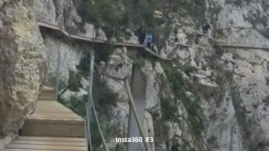 Der Steg ist an manchen Stellen sehr eng und die Felswände rangen z.T. in den Weg hinein. Hier wird auch klar, warum man einen Helm tragen muss. Als Begrenzung zur Schlucht sind Drahtseile gespannt.